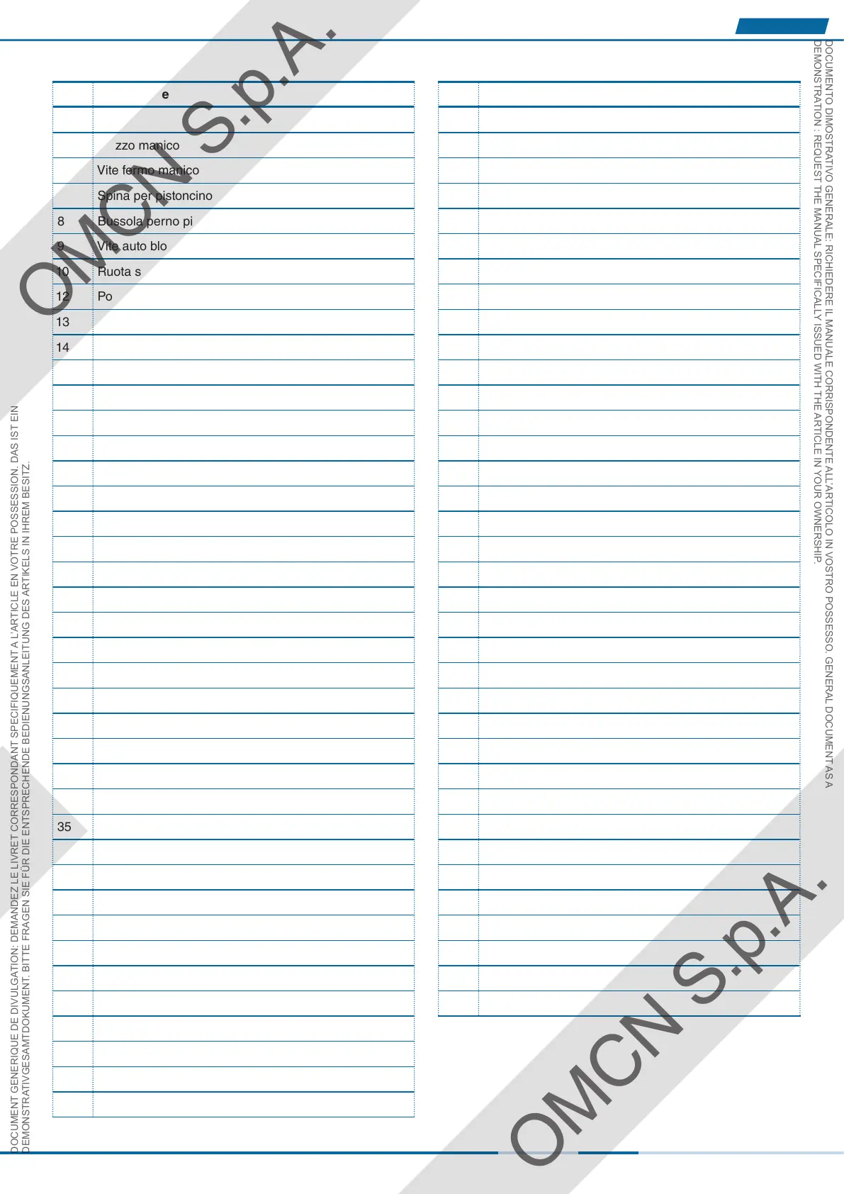 DOCUMENTO DIMOSTRATIVO GENERALE: RICHIEDERE IL MANUALE CORRISPONDENTE ALL’ARTICOLO IN VOSTRO POSSESSO. GENERAL DOCUMENT AS A