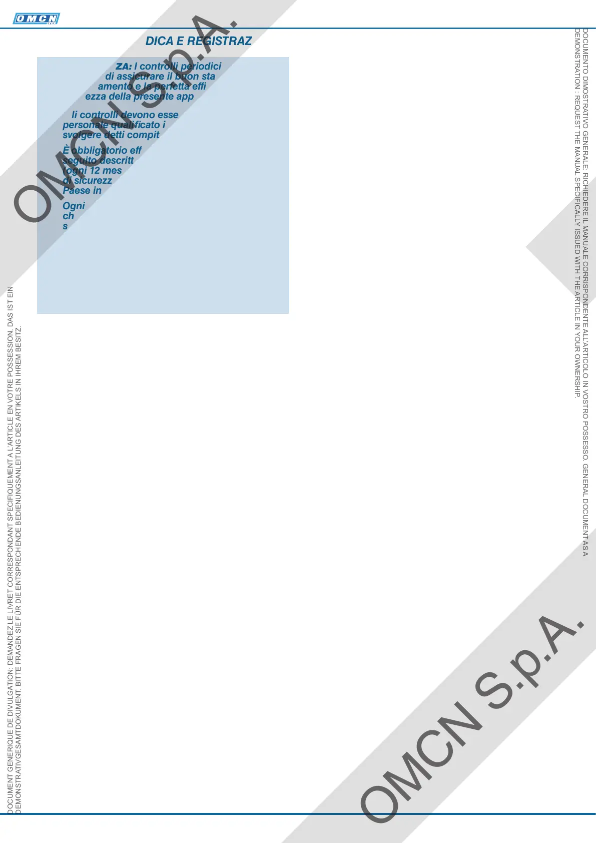 DOCUMENTO DIMOSTRATIVO GENERALE: RICHIEDERE IL MANUALE CORRISPONDENTE ALL’ARTICOLO IN VOSTRO POSSESSO. GENERAL DOCUMENT AS A