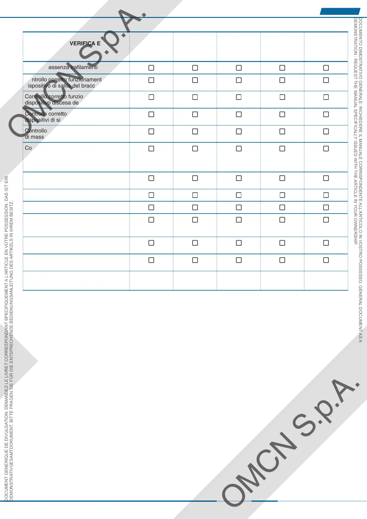 DOCUMENTO DIMOSTRATIVO GENERALE: RICHIEDERE IL MANUALE CORRISPONDENTE ALL’ARTICOLO IN VOSTRO POSSESSO. GENERAL DOCUMENT AS A