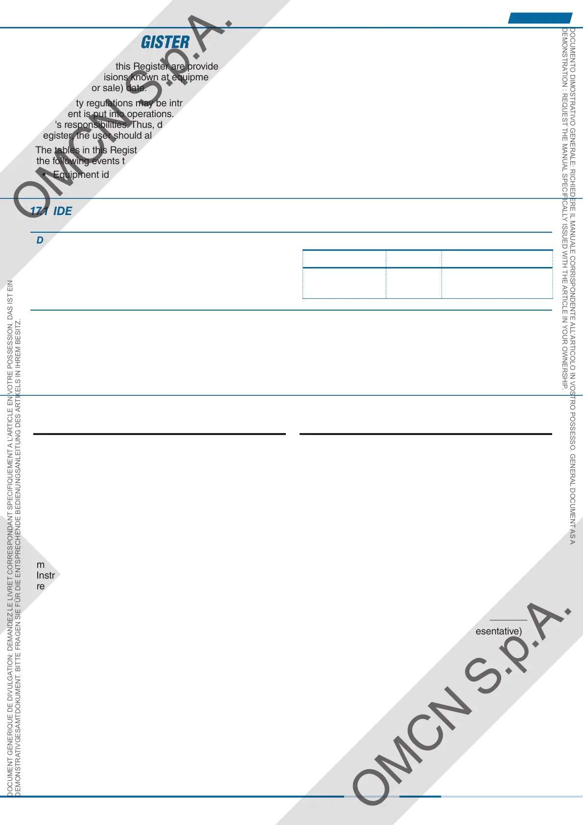DOCUMENTO DIMOSTRATIVO GENERALE: RICHIEDERE IL MANUALE CORRISPONDENTE ALL’ARTICOLO IN VOSTRO POSSESSO. GENERAL DOCUMENT AS A