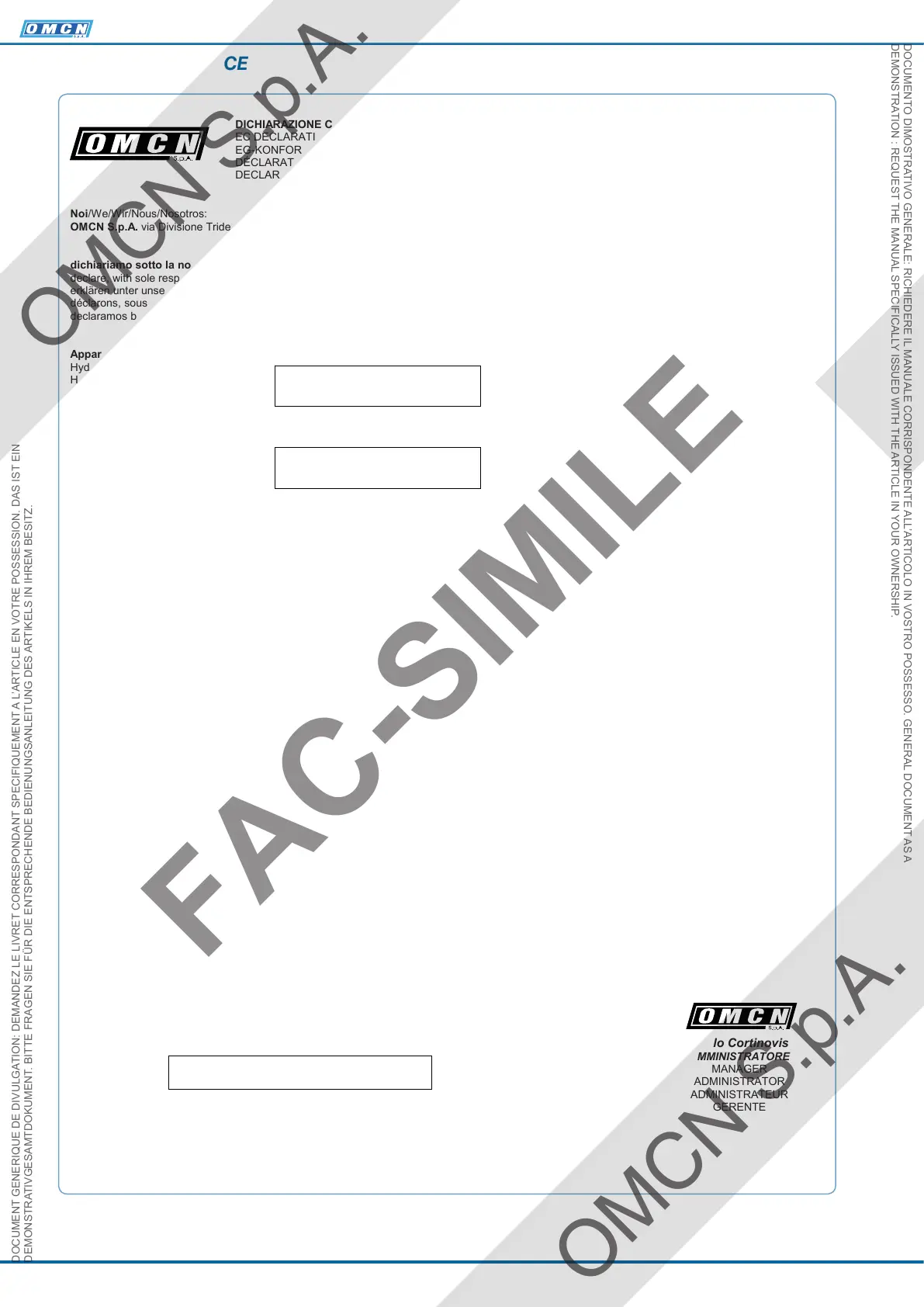 DOCUMENTO DIMOSTRATIVO GENERALE: RICHIEDERE IL MANUALE CORRISPONDENTE ALL’ARTICOLO IN VOSTRO POSSESSO. GENERAL DOCUMENT AS A