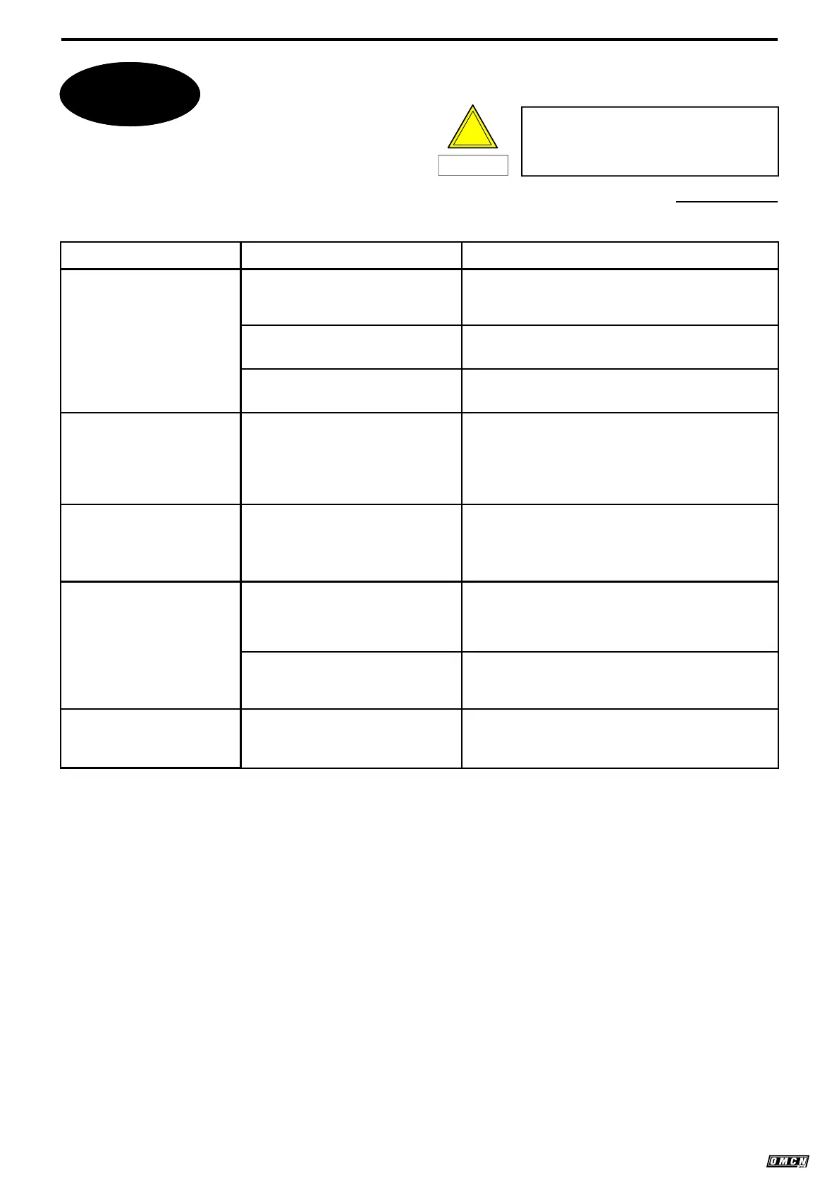 contact OMCN S.p.A. and avoid any non-specific operations.