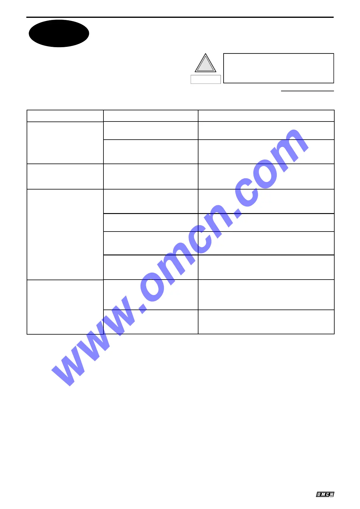 TROUBLESHOOTING TABLE