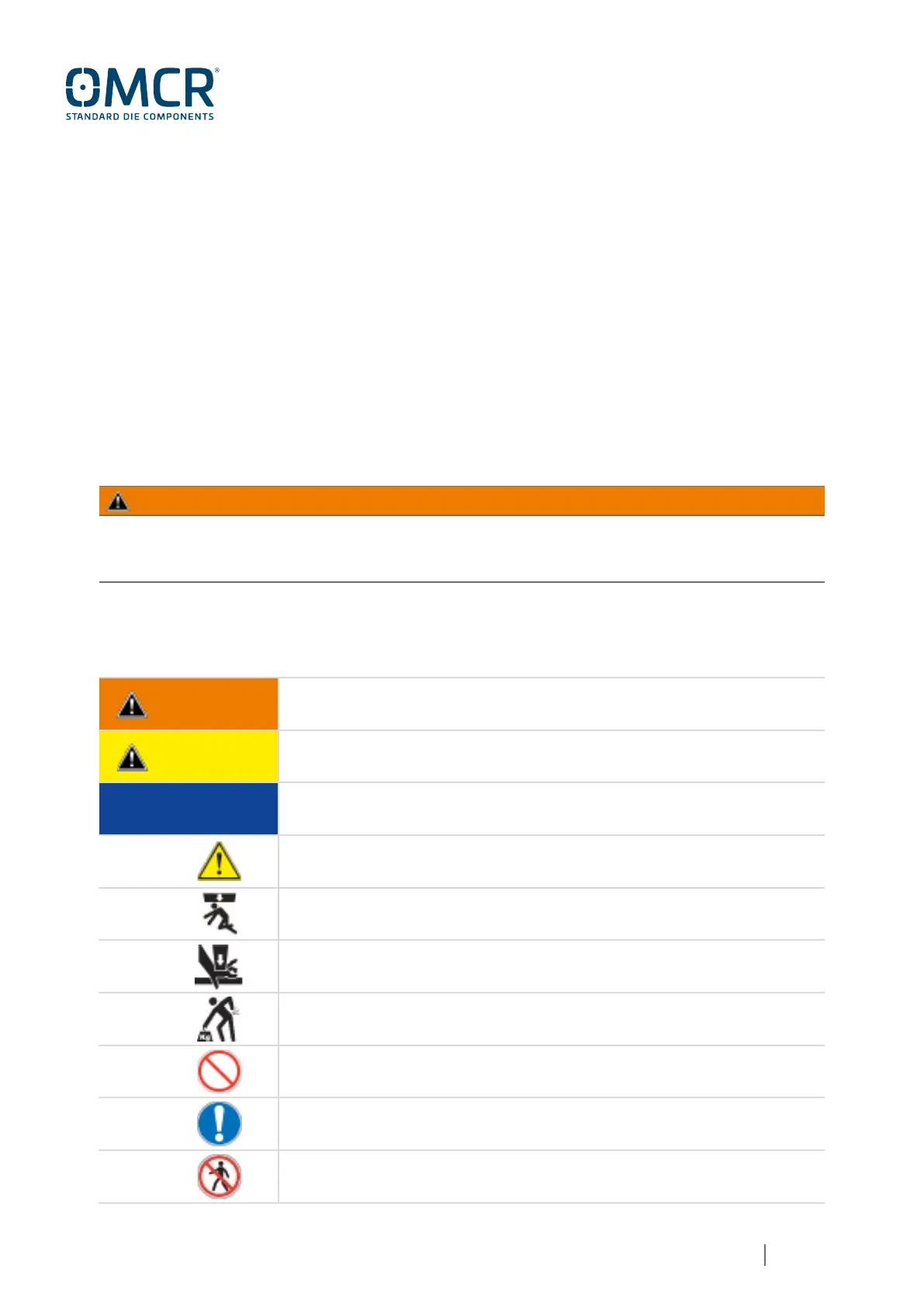 gemäß den Normen ISO 3864-2, ANSI Z535.6 ANSIZ535.4 klassifiziert worden: