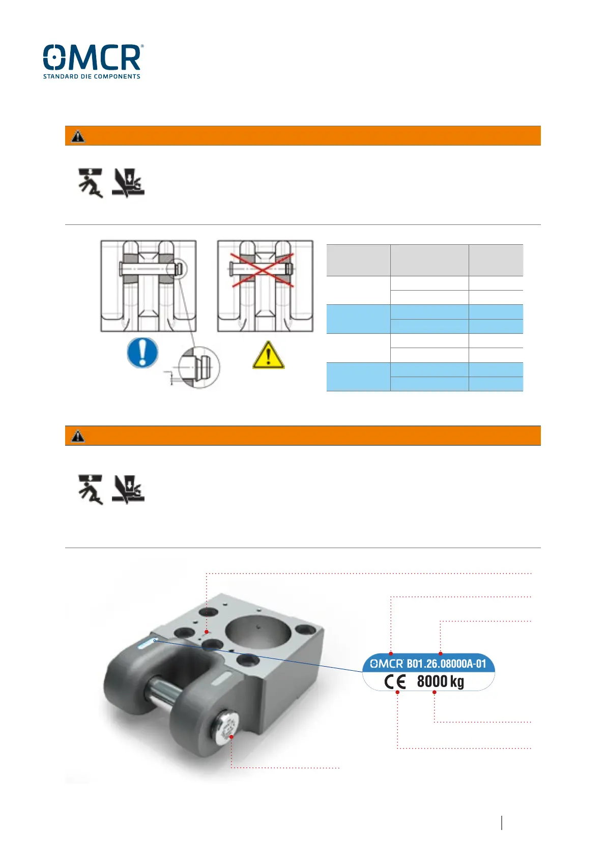 das CE-Zeichen, die Art.-Nr. und das Material sind unauslöschlich auf Tragbolzen und