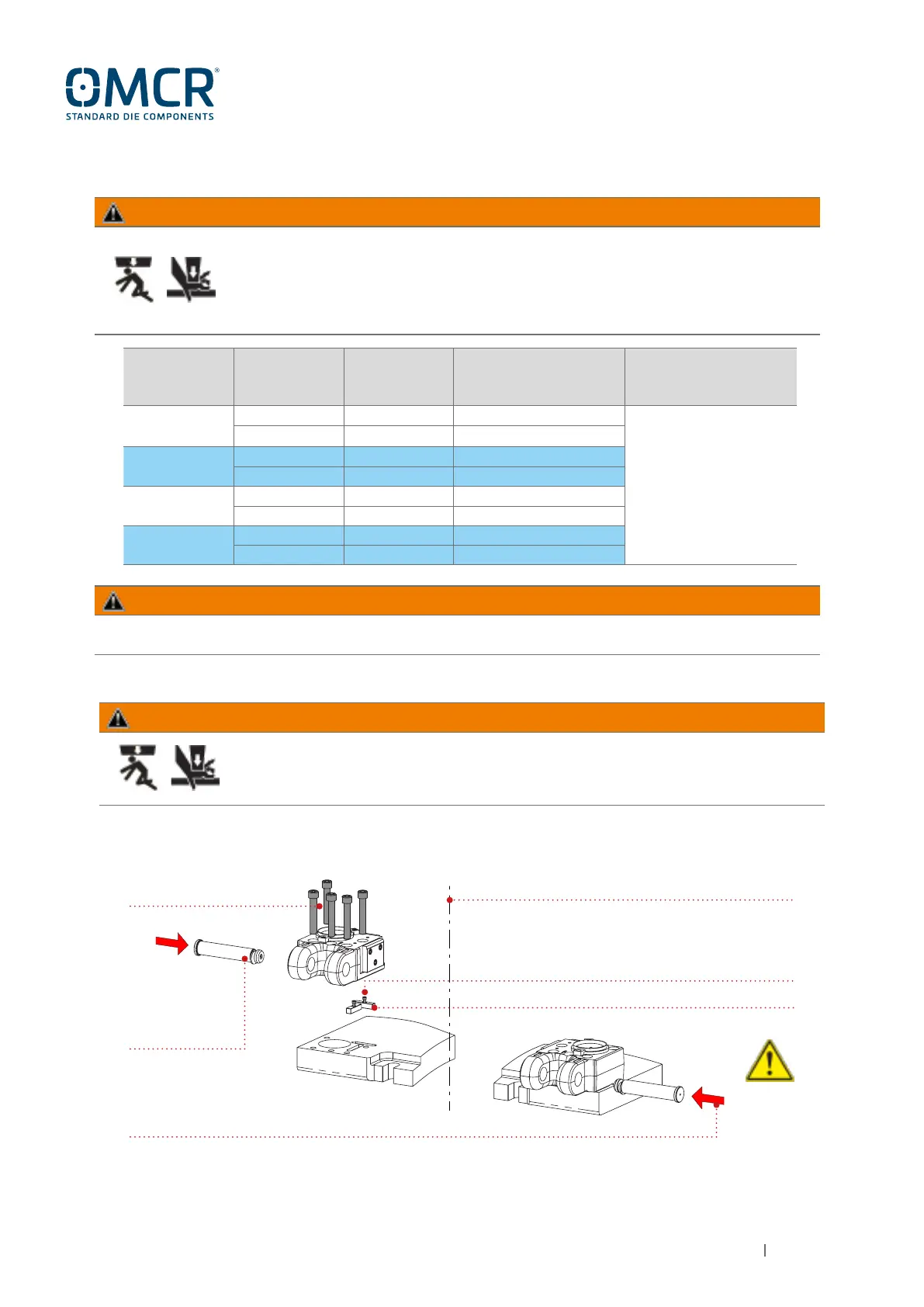 Au moment de l’ opération, vérifier la correcte fermeture des vis; dans le tableau suivant