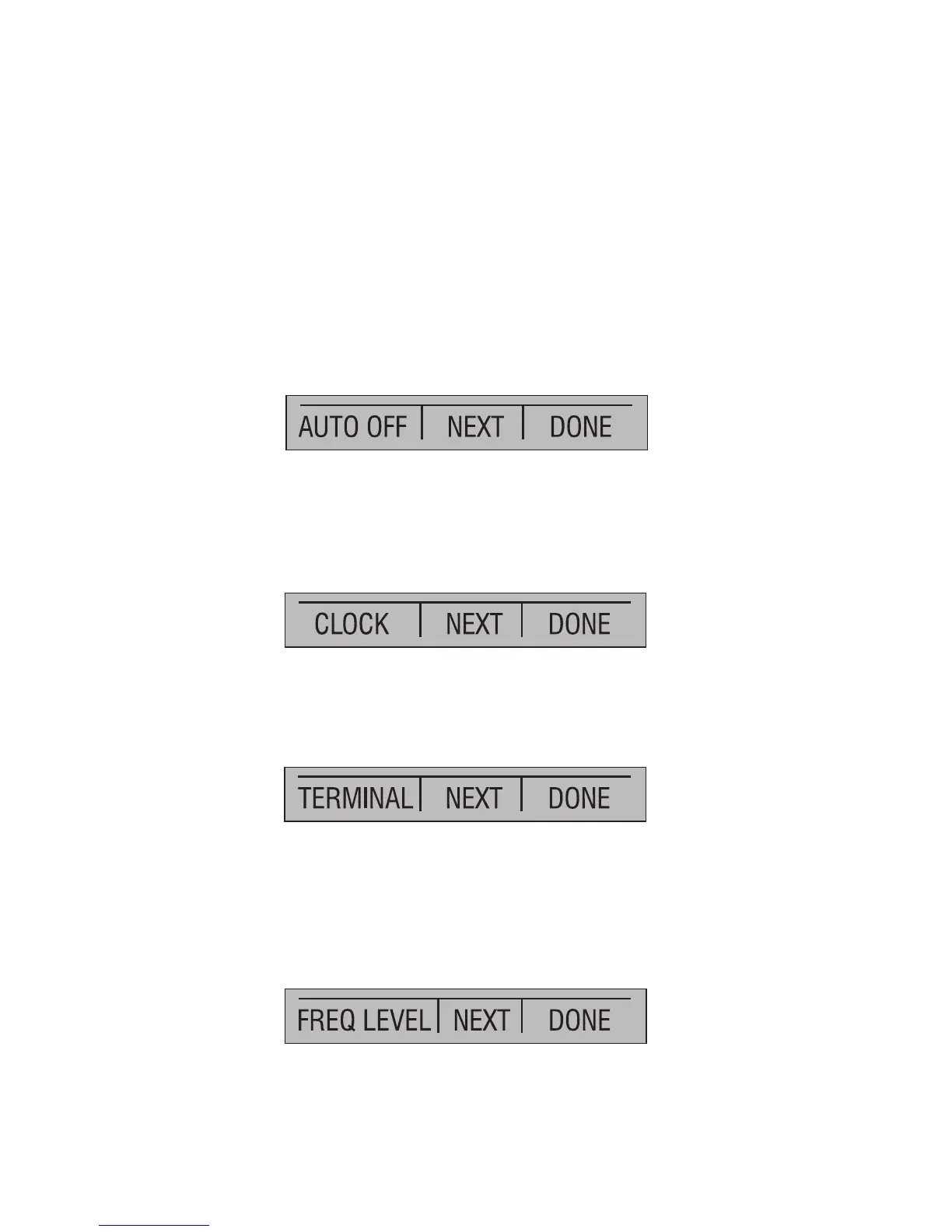 available in this menu are [FREQ LEVEL], [NEXT], and [DONE]. The