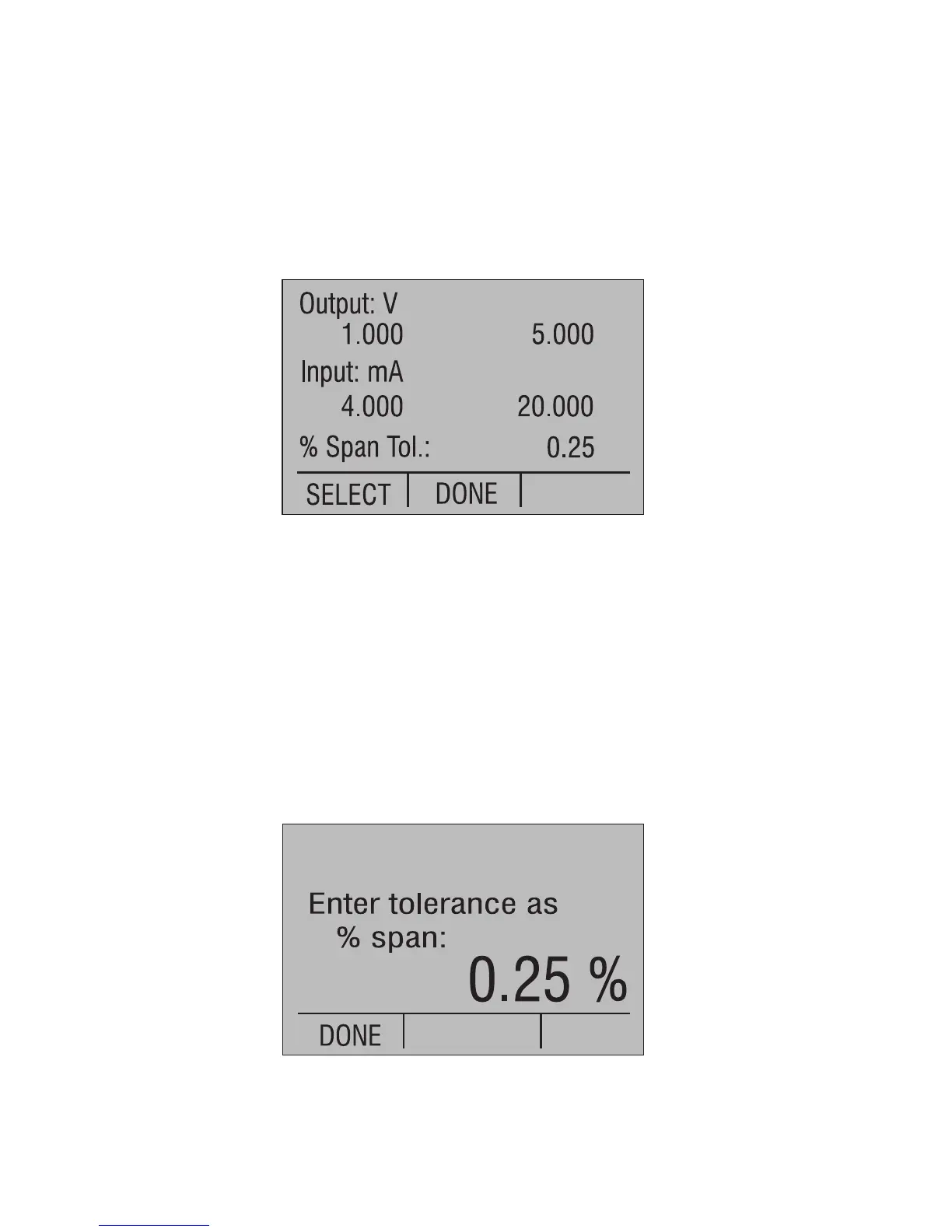 and span, and the % span error tolerance.
