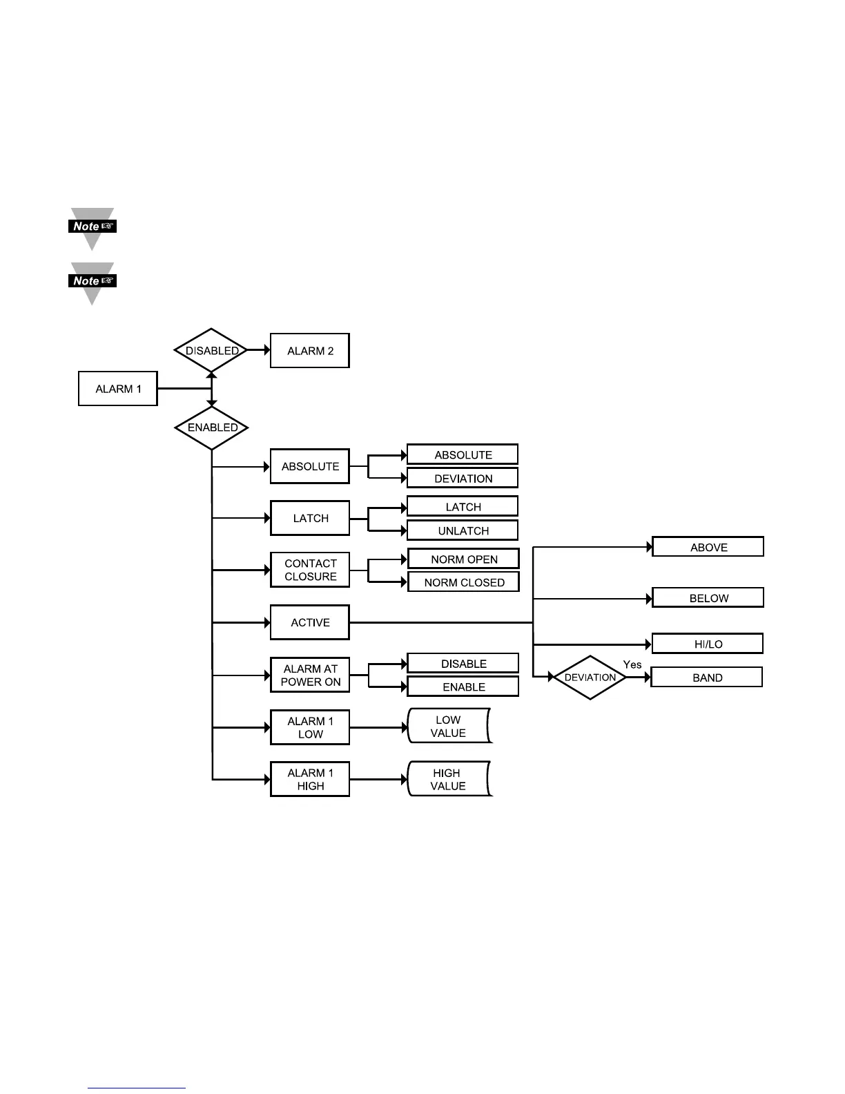 follows: Alarm 1 & Alarm 2, Alarm 1 & Output 2, Output 1 & Alarm 2, Output 1