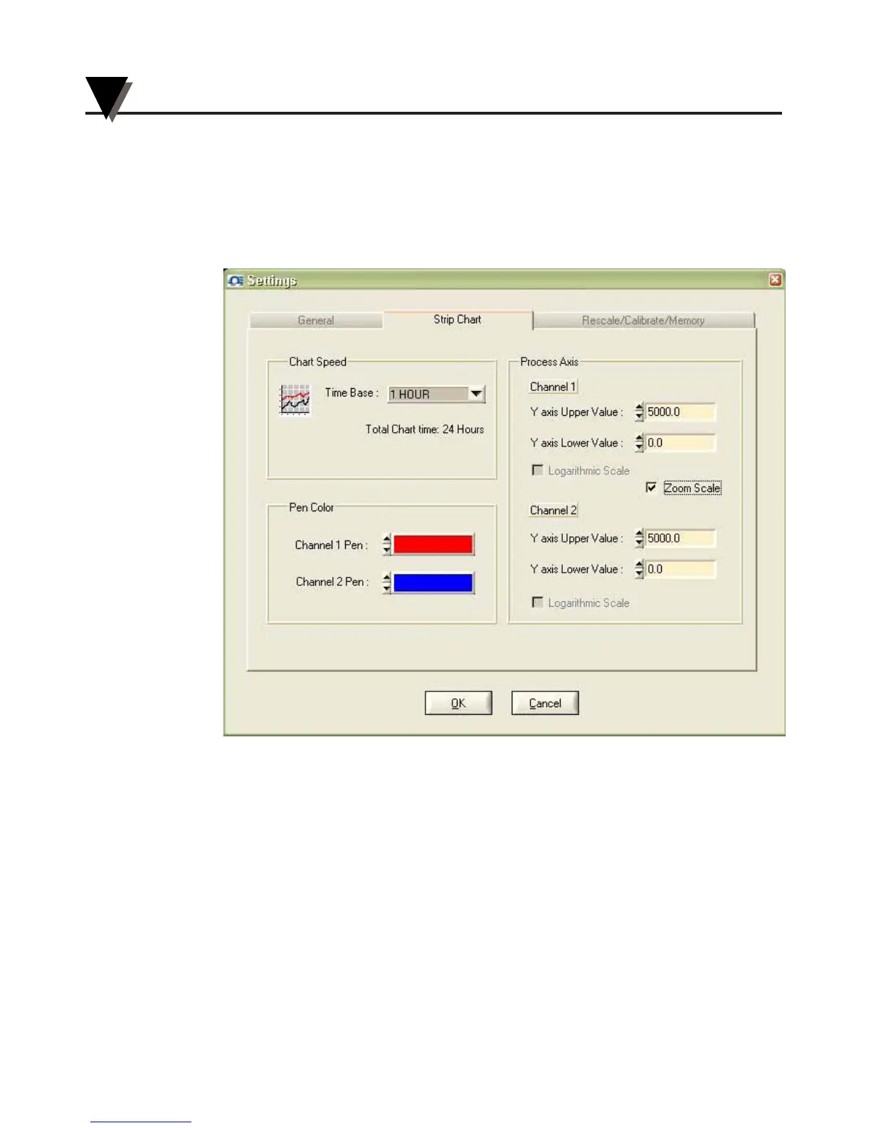 Figure 3-7. Settings Menu - Strip Chart Tab Screen