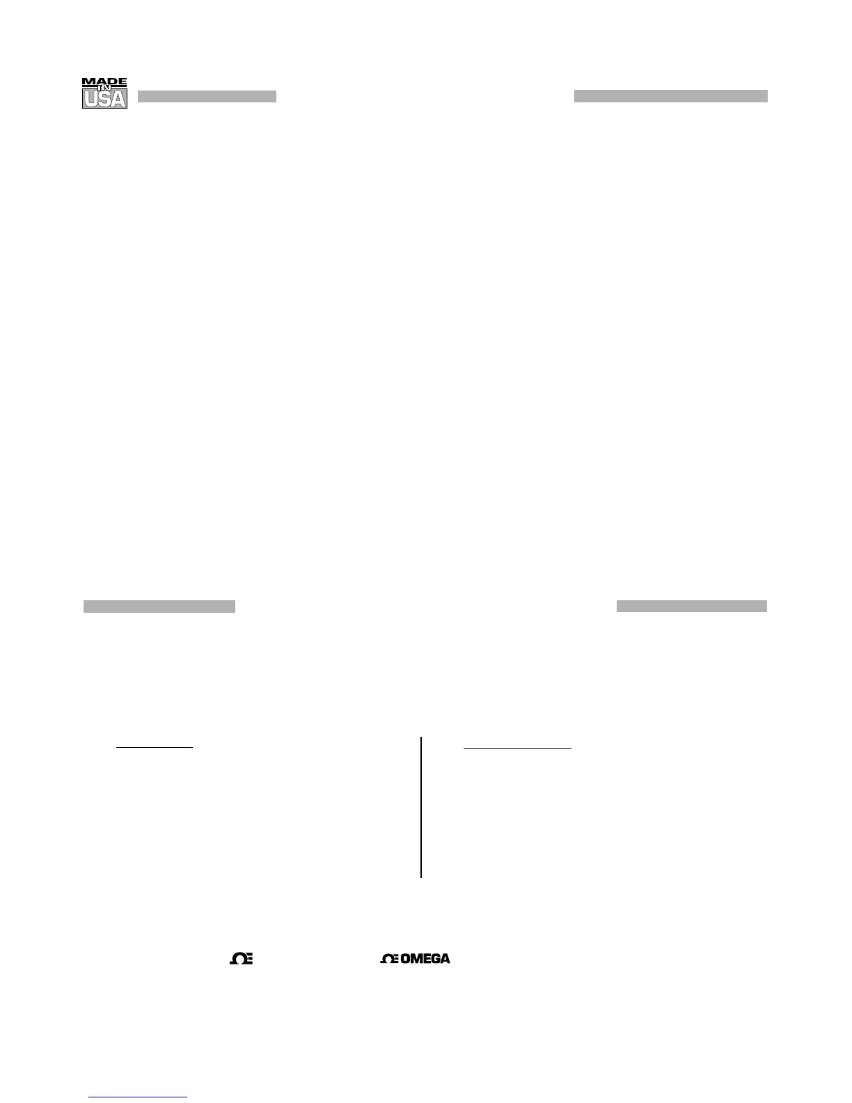 OMEGA, if the unit is found to be defective, it will be repaired or replaced at no charge. OMEGA’s WARRANTY