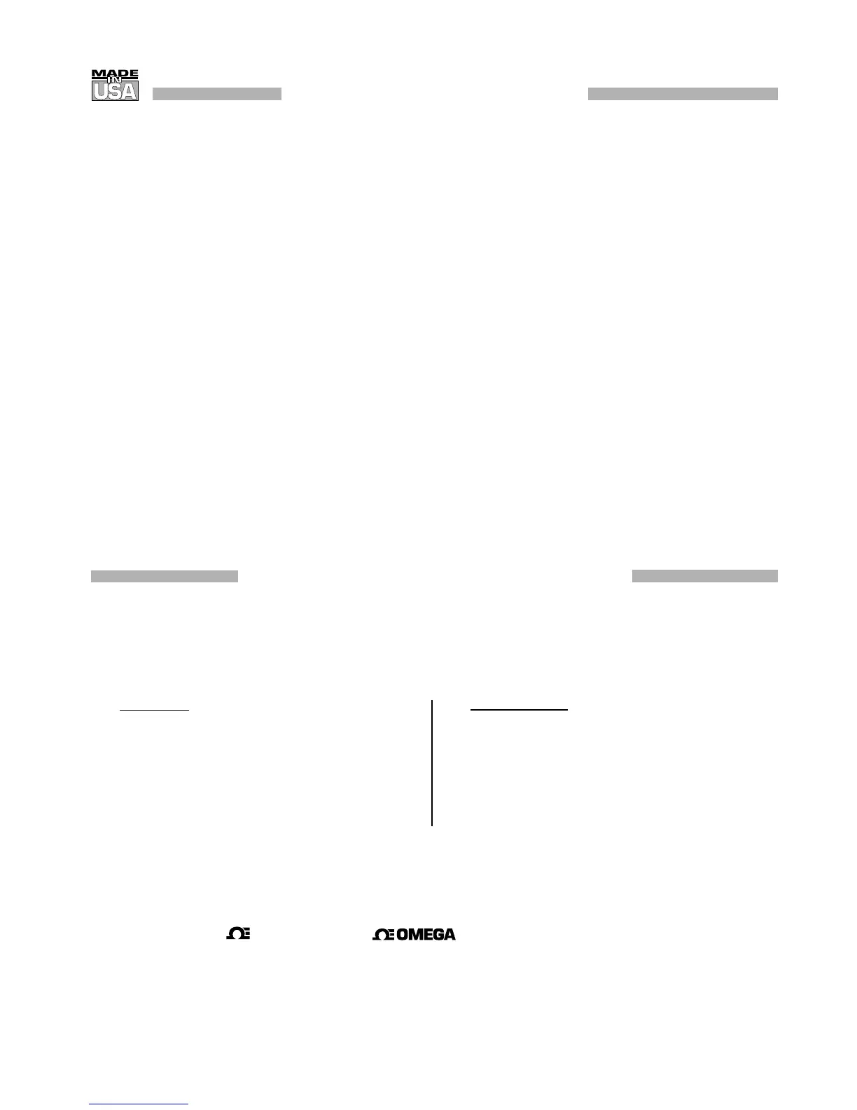 manufactured by it will be as specified and free of defects. OMEGA MAKES NO OTHER WARRANTIES OR