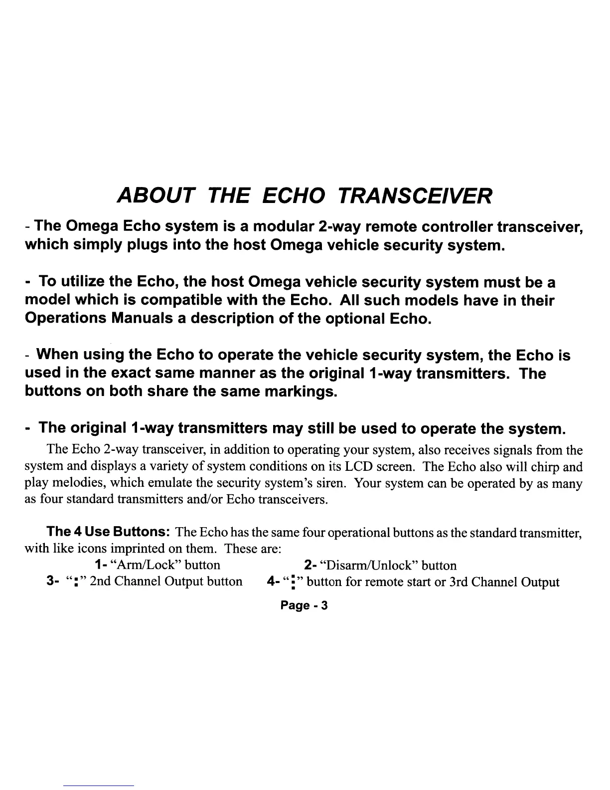 The Echo 2-way transceiver, in addition to operating your system, also receives signals from the