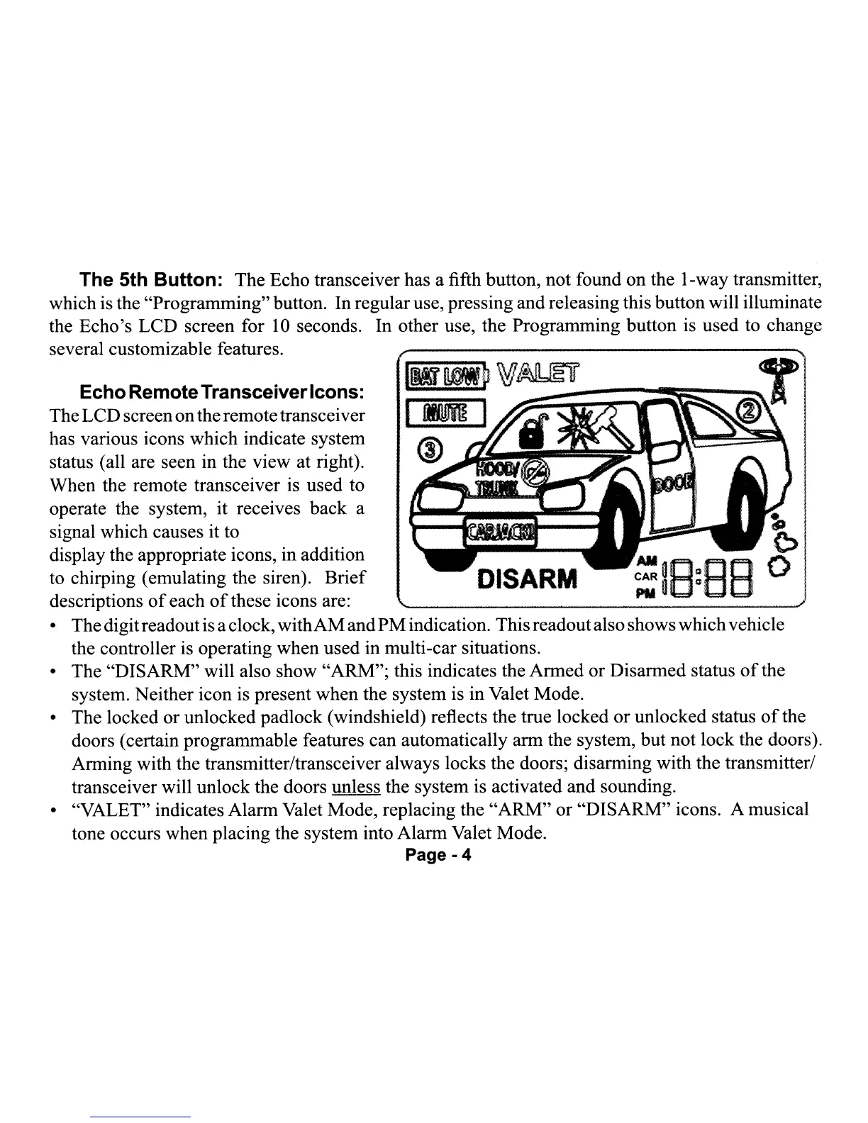 • "VALET" indicates Alarm Valet Mode, replacing the