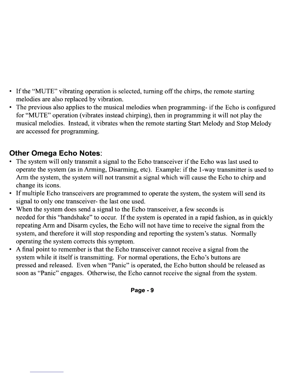 and Disarm cycles, the Echo will not have time to receive the signal from the