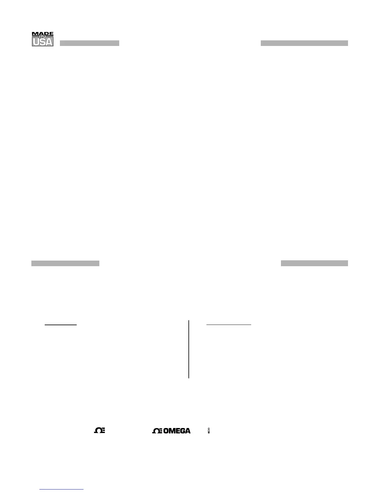 humans, or misused in any way, OMEGA assumes no responsibility as set forth in our basic WARRANTY/DISCLAIMER