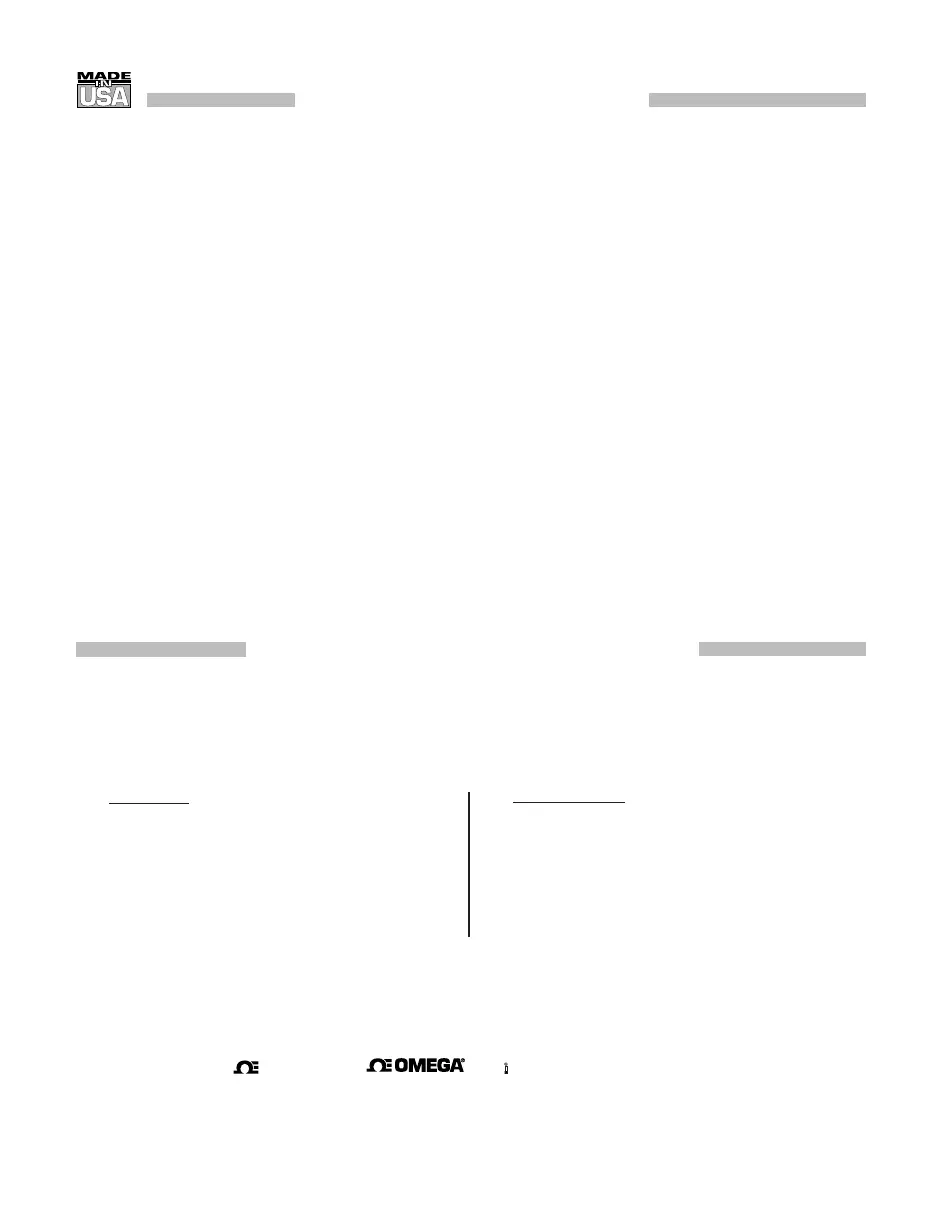 OMEGA ENGINEERING, INC. warrants this unit to be free of defects in materials and workmanship for a period of one (1) year