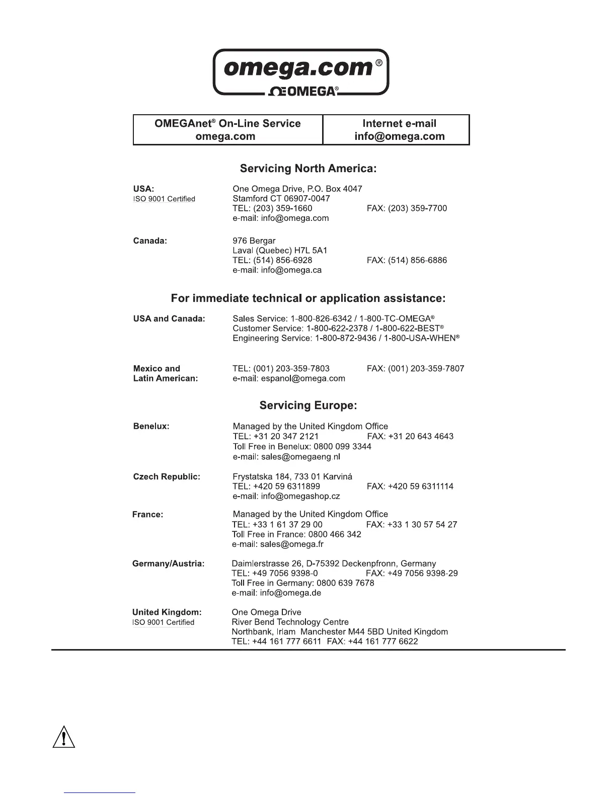 It is the policy of OMEGA to comply with all worldwide safety and EMC/EMI regulations that apply.
