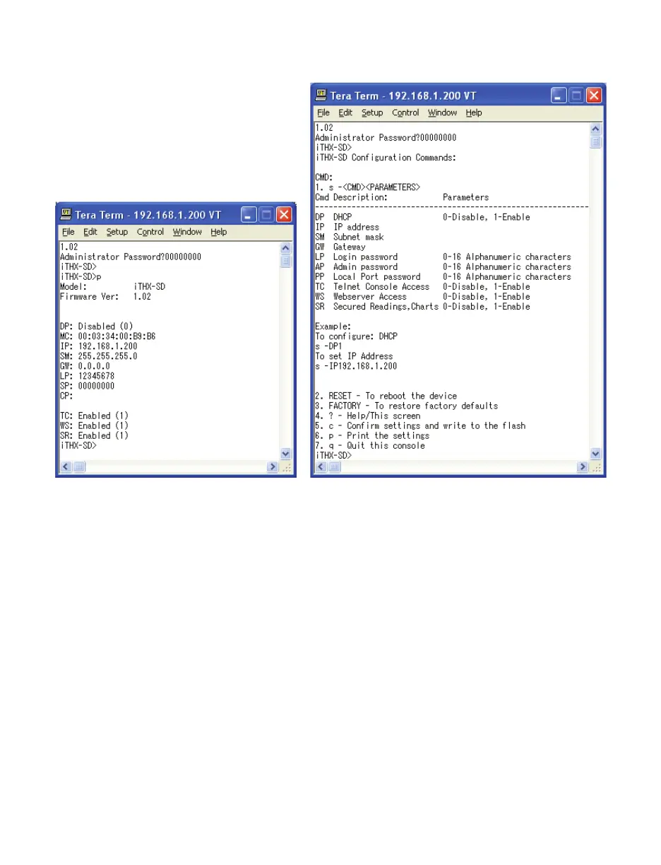 Telnet to port 2002 – p command Telnet to port 2002 – ? command