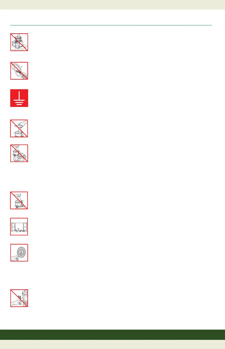 NEVER PUT A FINGER, A FORK OR A SPOON ETC. INTO JUICE OUTLET.