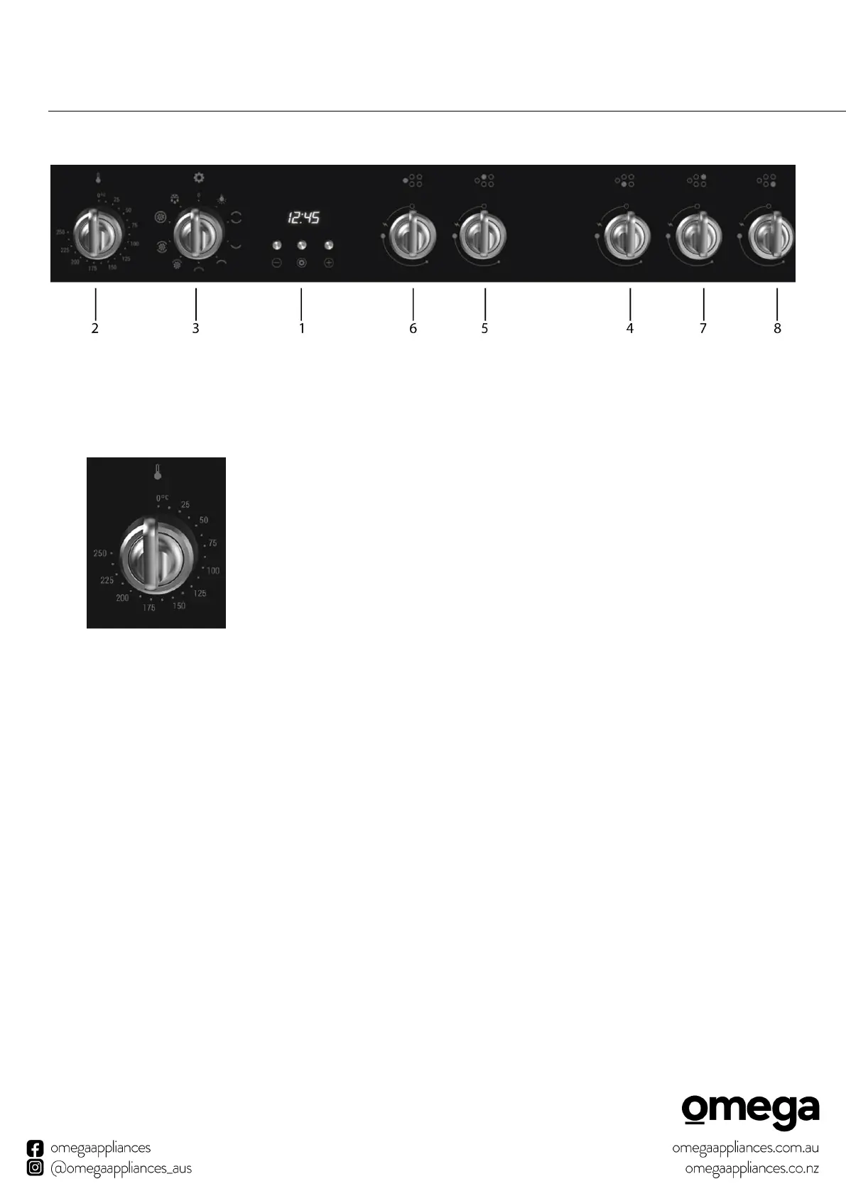 2. Set the temperature dial to the required temperature in order to operate the oven.
