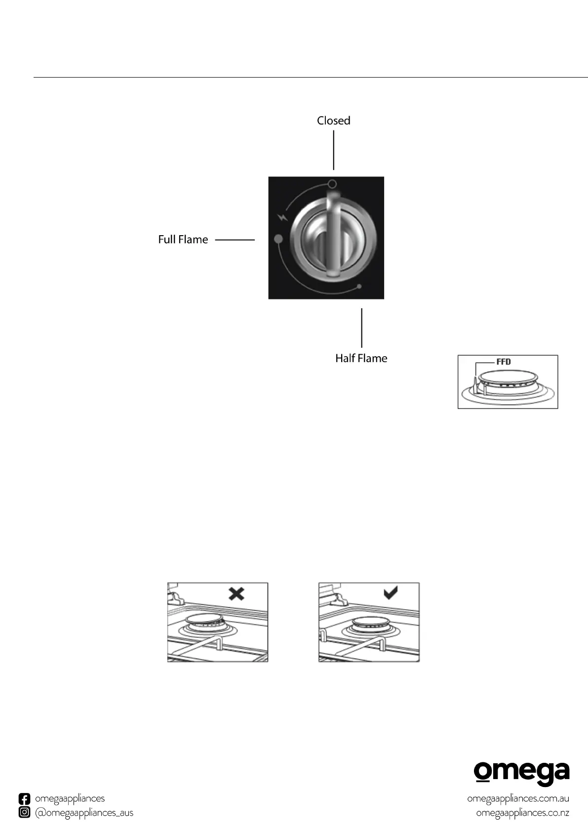 4. Before operating your hob please make sure that the burner caps are well positioned. The right