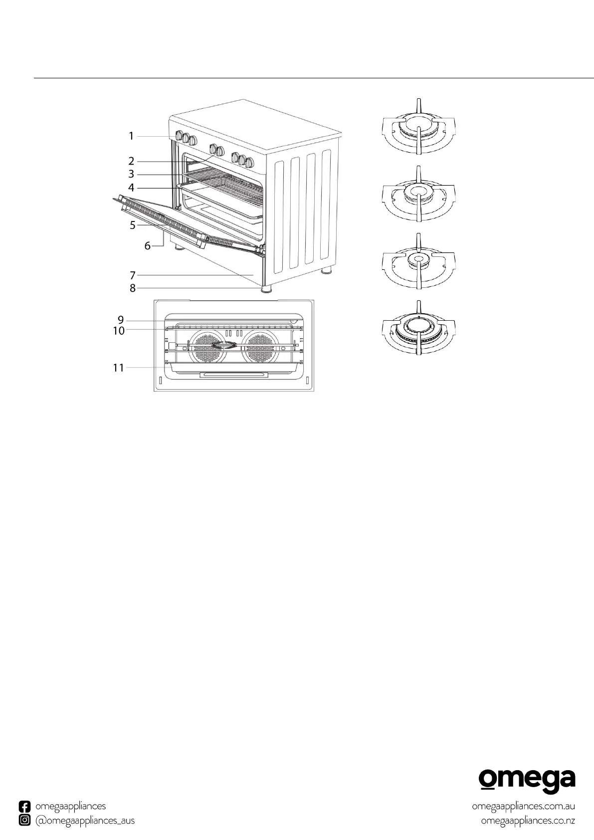 1. Oven control knobs
