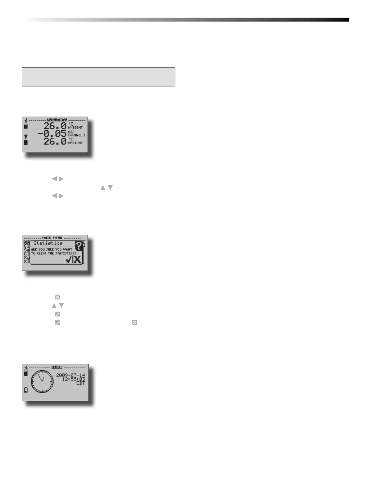 Minimum, maximum, and average values are calculated for each channel and displayed in the statistics screens.