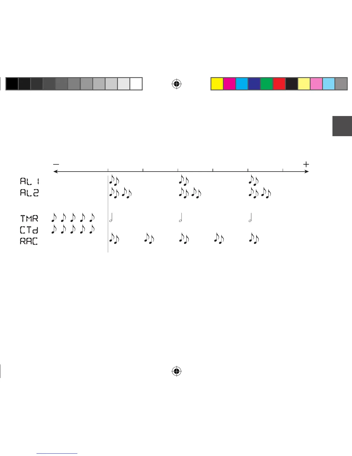Chimes at 300, 240, 120, 60, 45, 30, 20, 15 s, as well as the last 10 seconds before the start of the