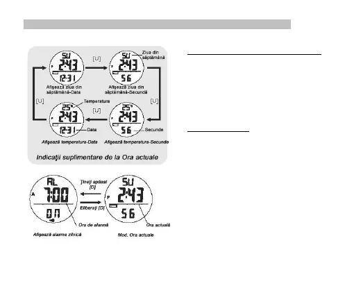 4.0 Modalitatea Ora actuală - Indicaţii suplimentare şi alarma zilnică