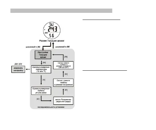 ▪ После задания места погружения мигает глубина по