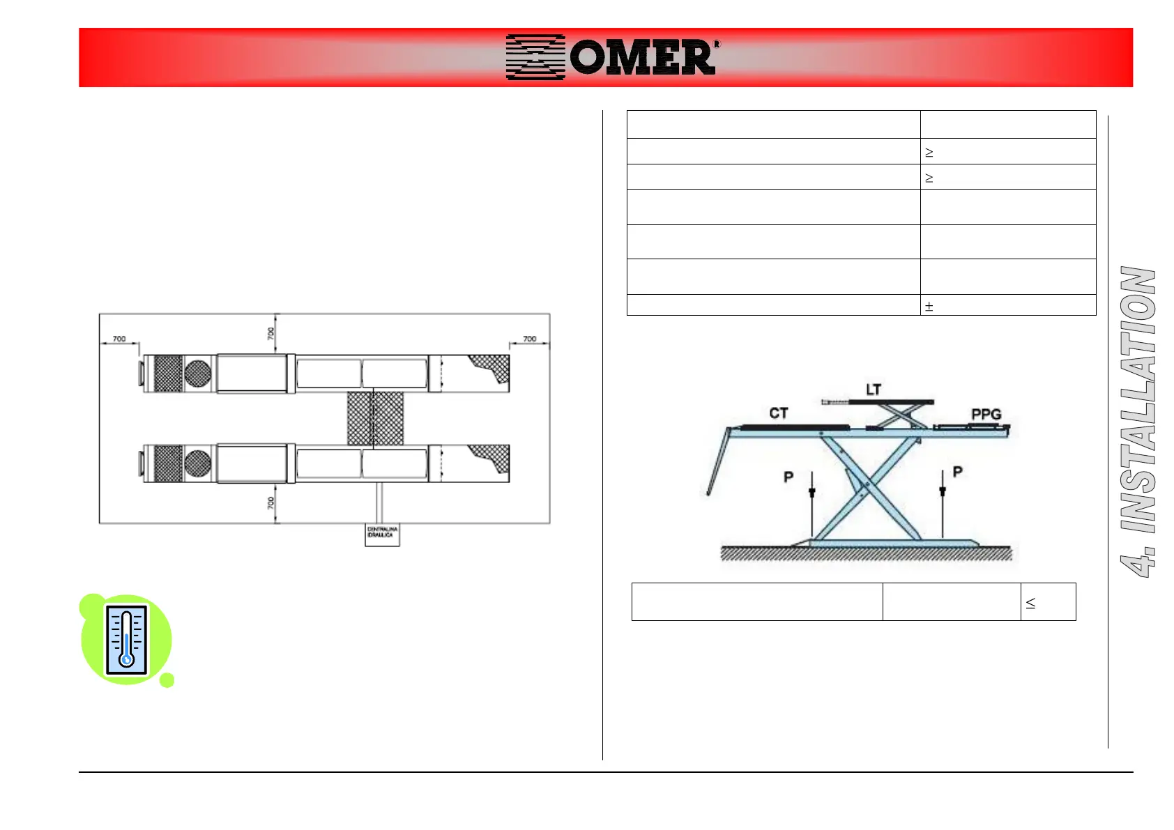 (*) press calculated under the base plates.