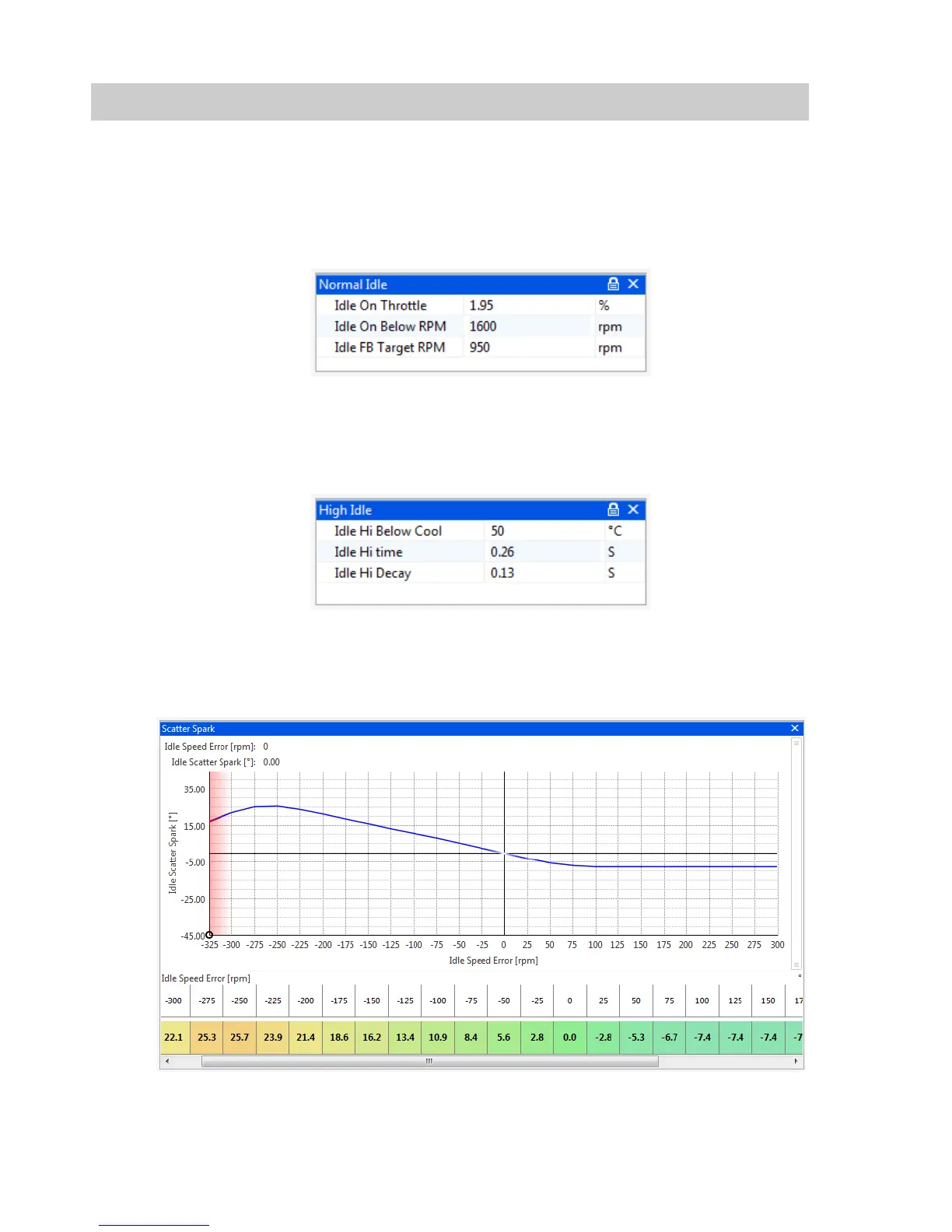 The Idle Scatter Spark Table shows the change in ignition timing based upon rpm away from the