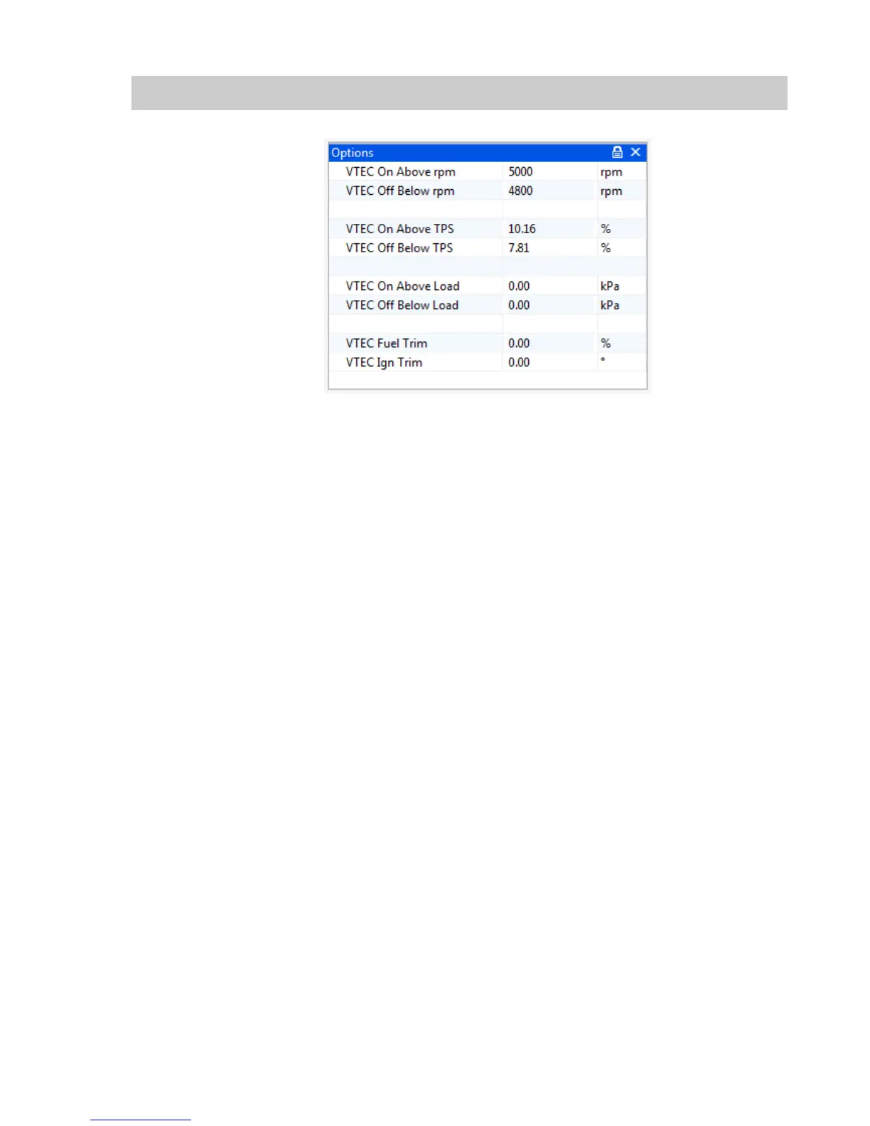 hysterisis provided by separate on and off points. In the VTEC condition there is also a fuel and