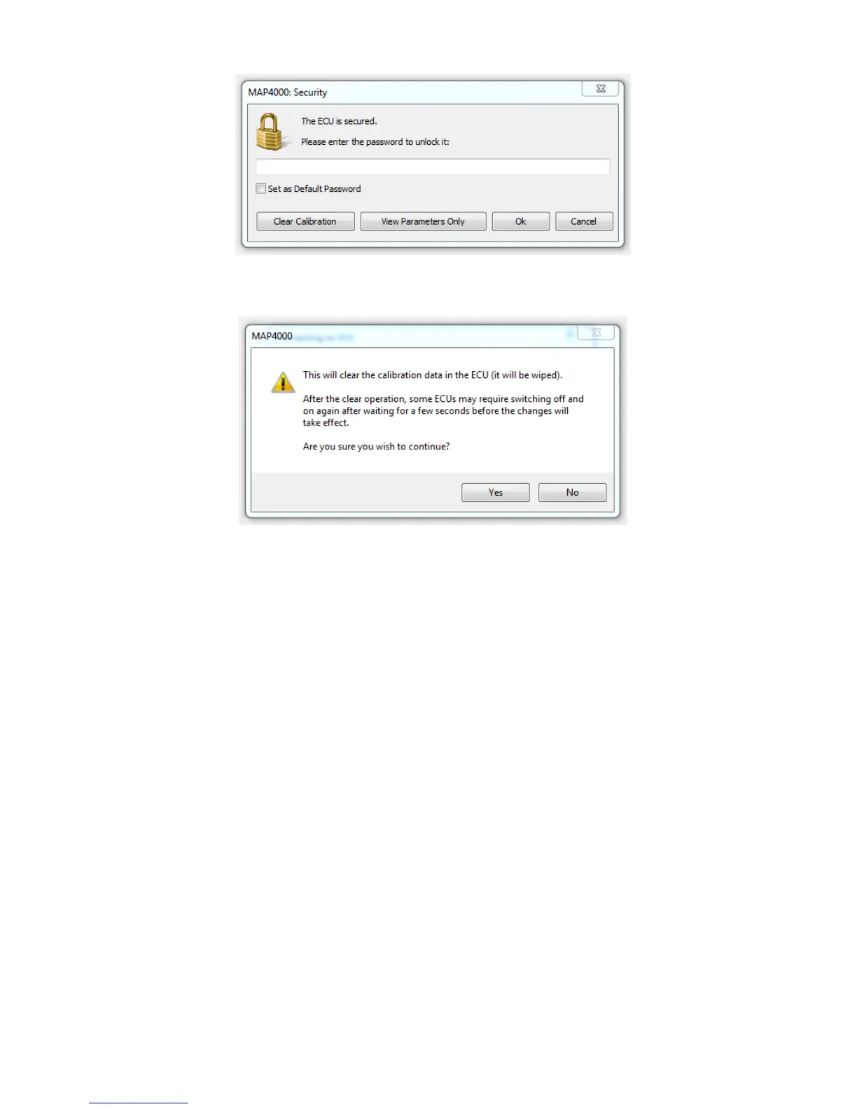 A dialog box appears asking if you wish to erase the calibration to allow access. Click Yes.