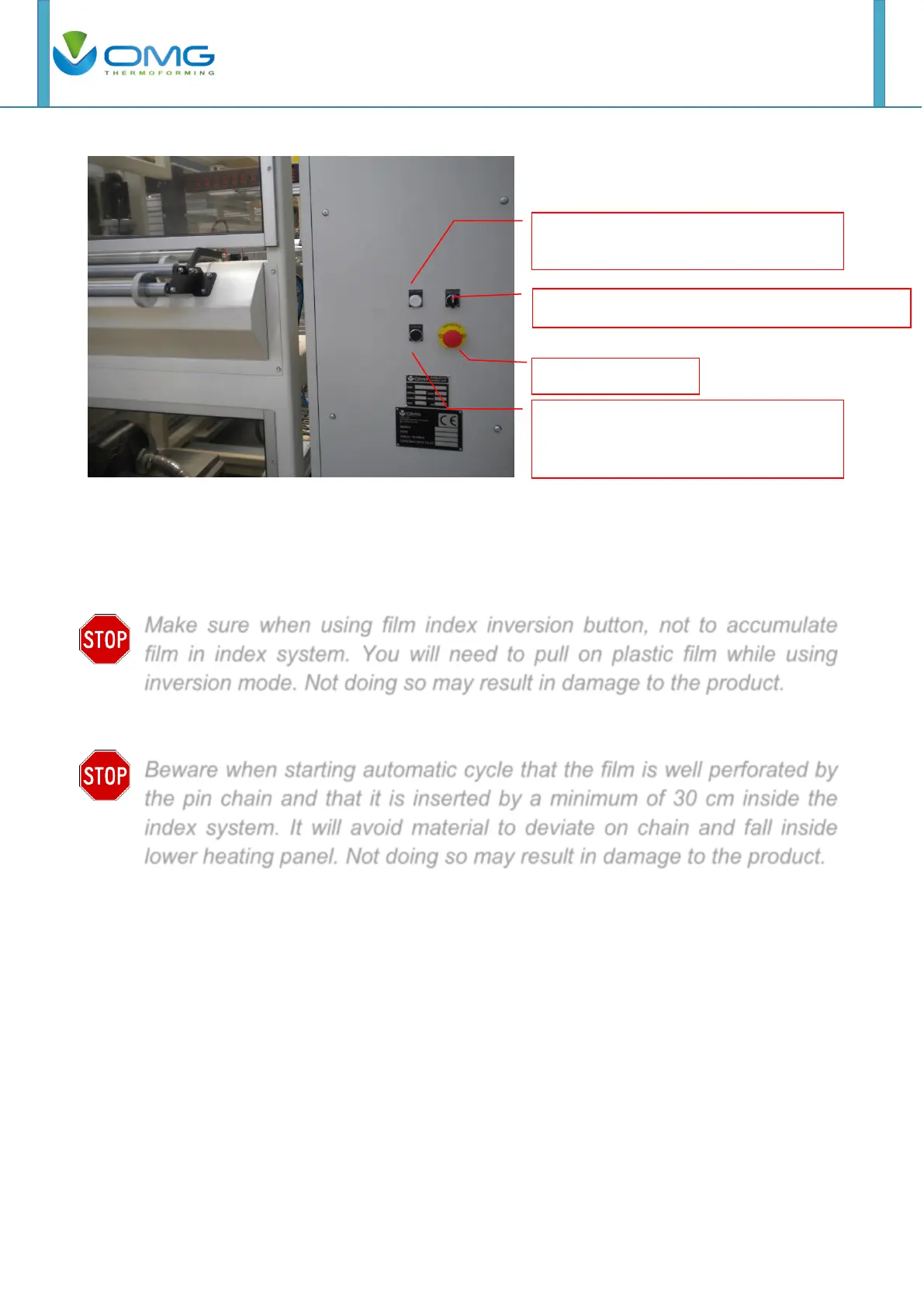 Beware when starting automatic cycle that the film is well perforated by