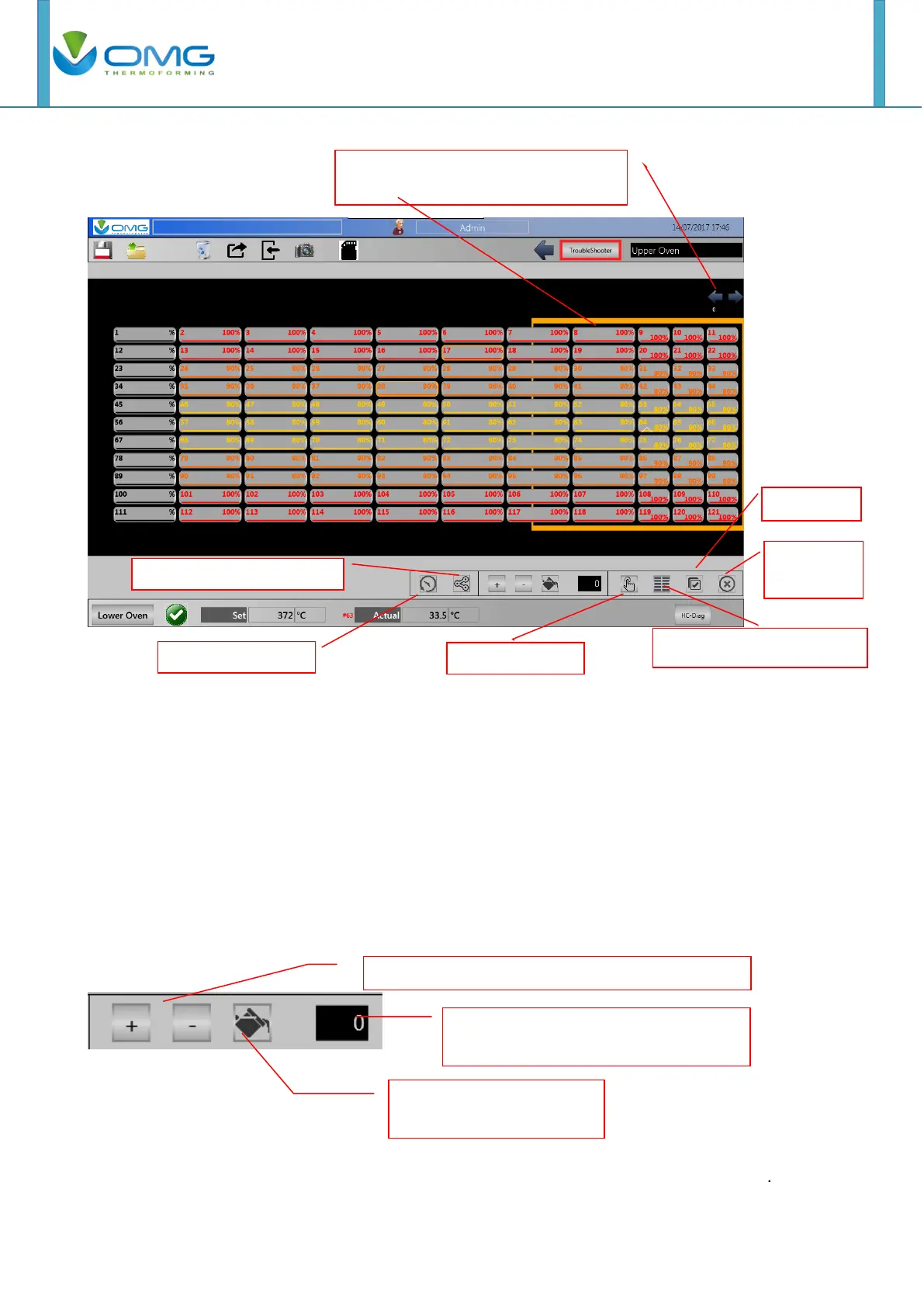 pressing the chosen zone to modify, it will go up or down by the percentage setup in the upper
