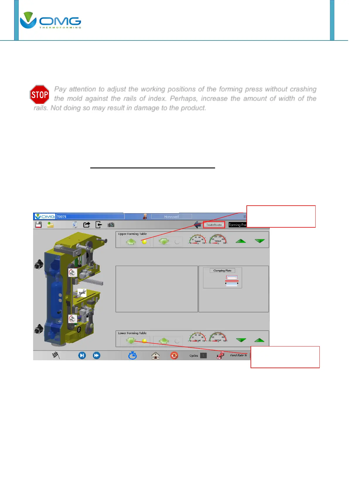 Using the buttons below, move Upper and Lower forming table to open position.