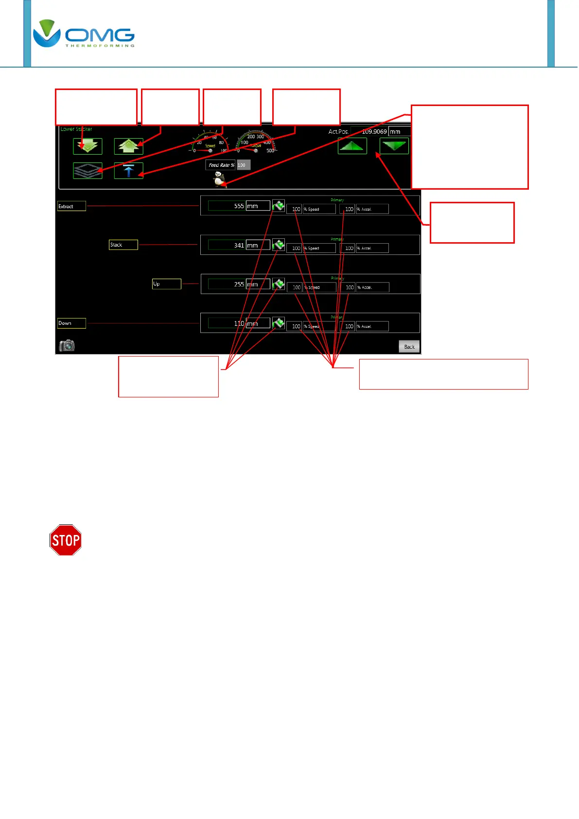 It is required to set the lower stacker position from the lower stacker video page. In this example,