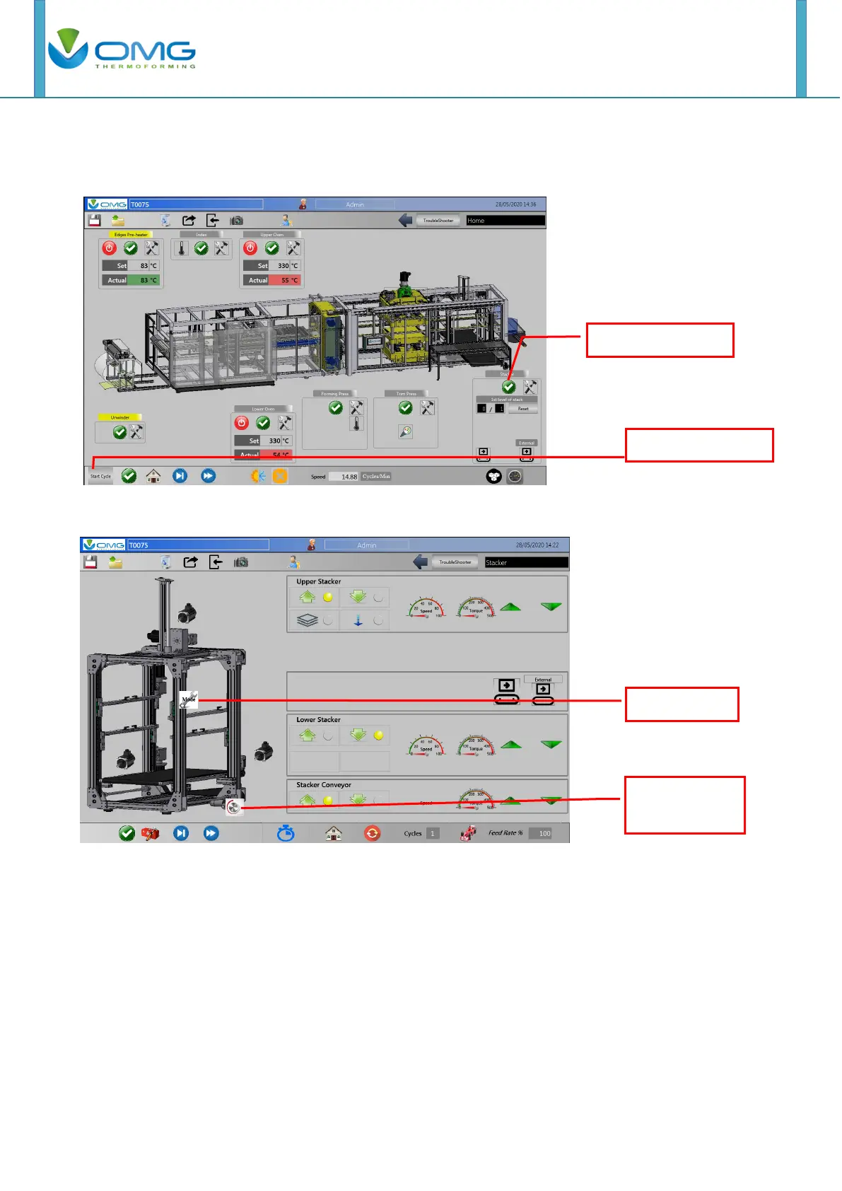 The stacker device cycle start when the index start or stop.