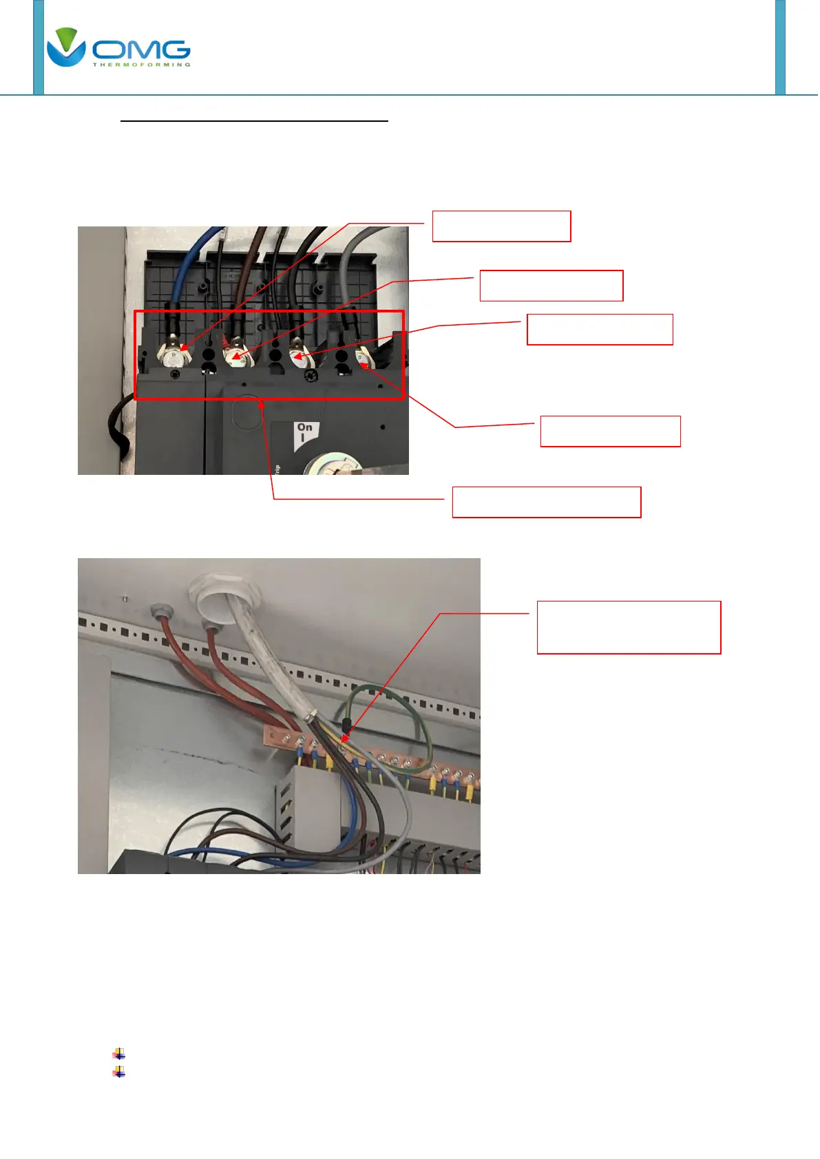 3 cables for phases (see electrical schematic provided with manual).