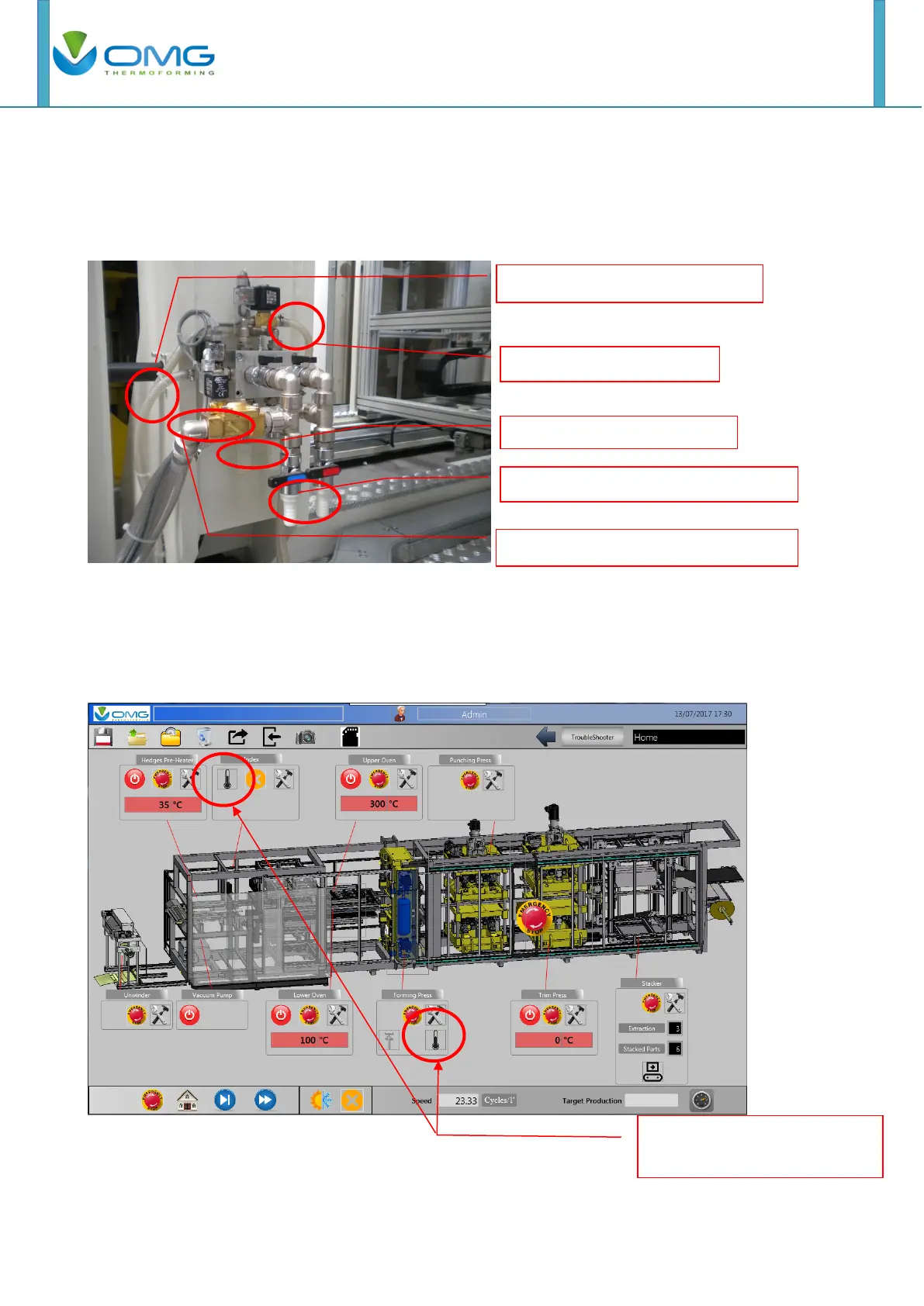 cooling valve are activated when the heaters of the ovens and the die cut, are respectively on.