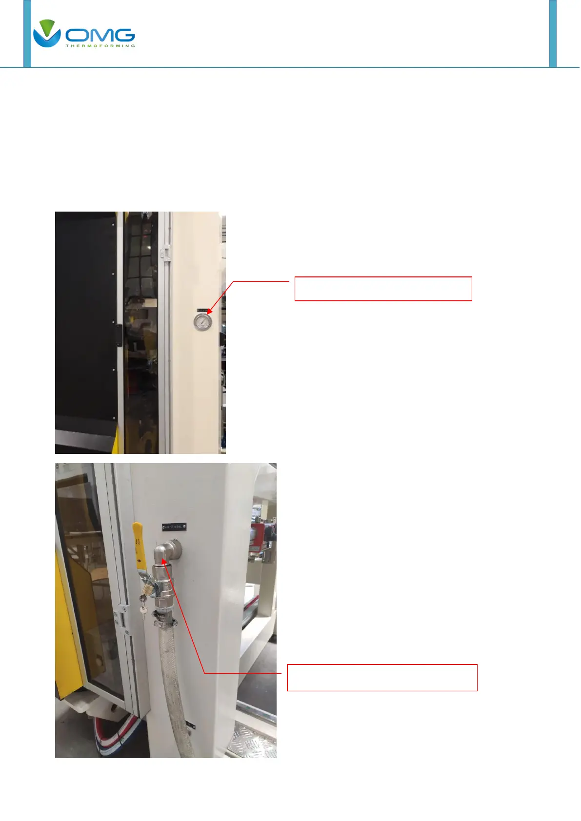 Pneumatic connection is made with tubes with minimal 1” diameter. The air supply pressure must