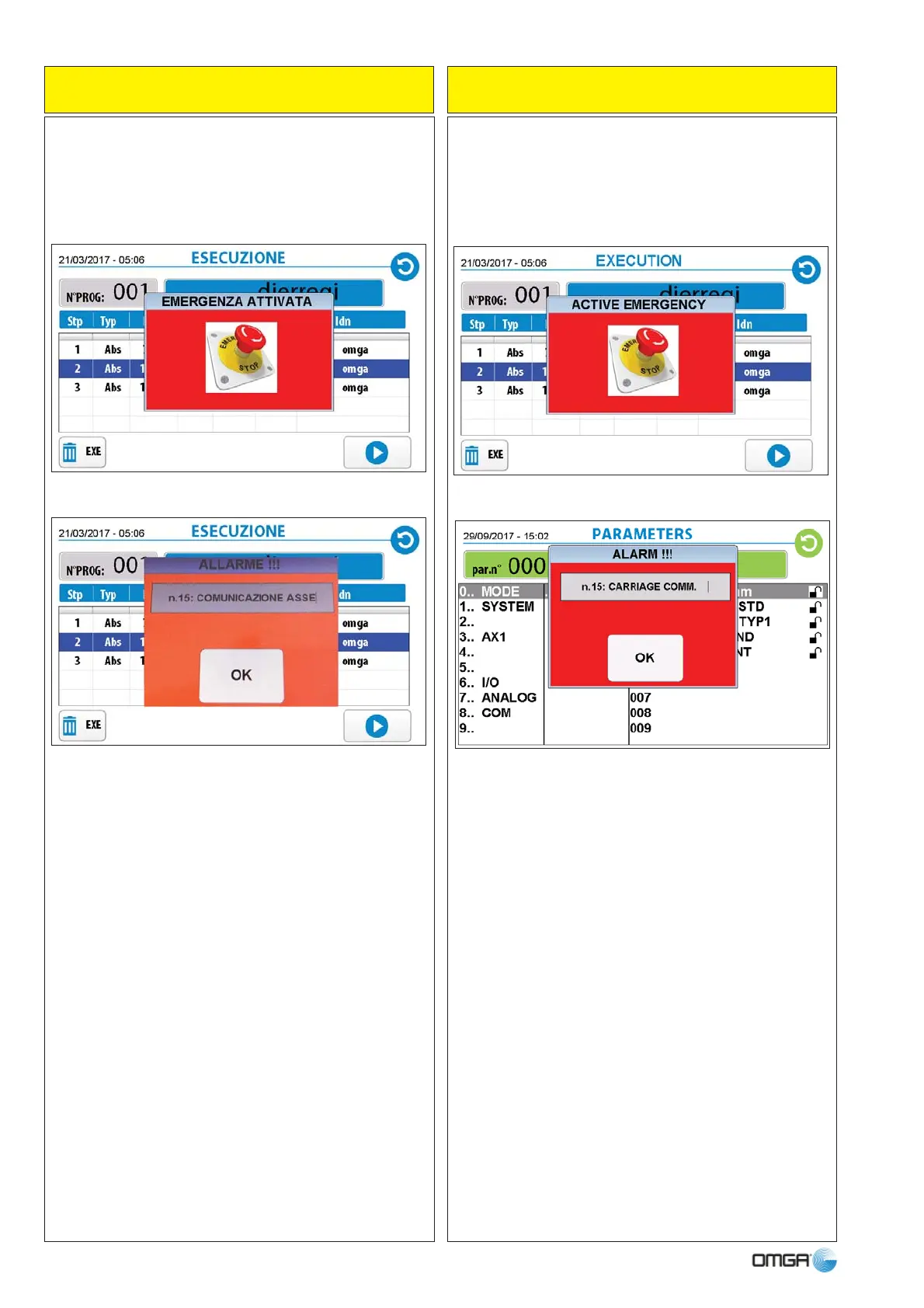 Only for the message ‘EMERGENCY ERROR ACTI-