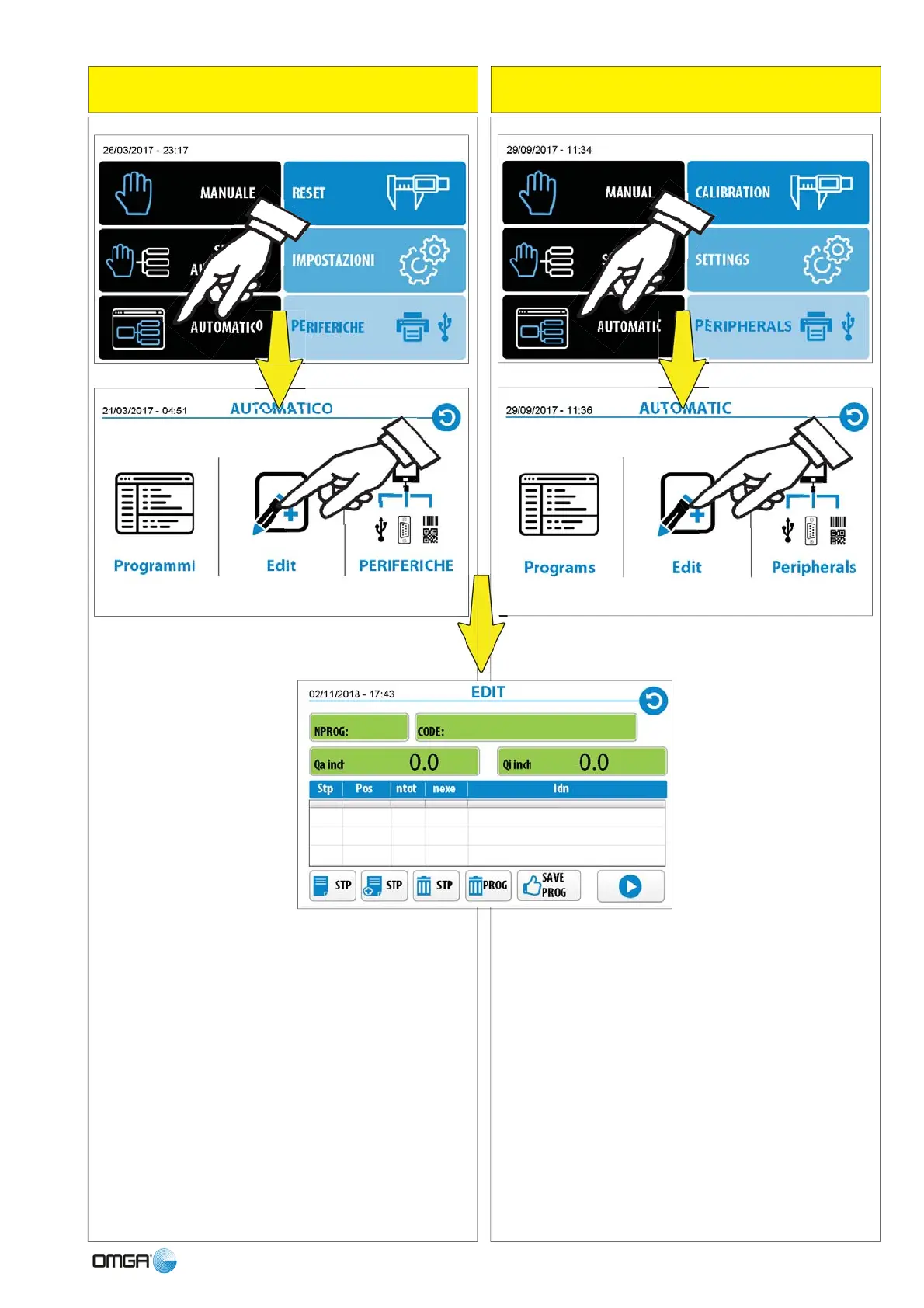 N° PROG : selezionare o creare un programma.