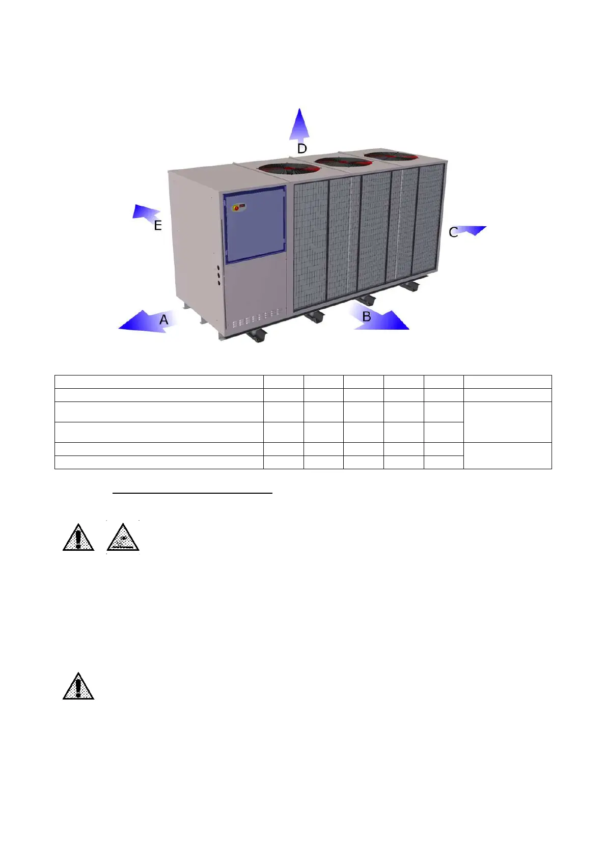 There must be sufficient free space above the chiller to ensure that air can flow freely to cool the conden-