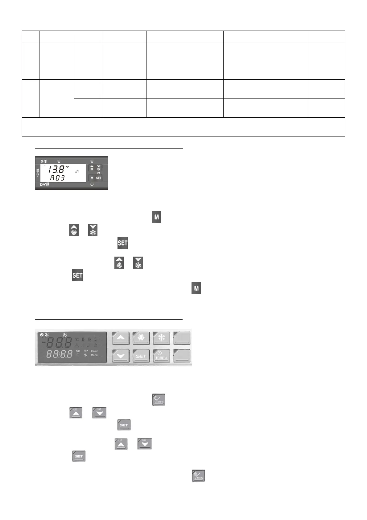 (*) A After fault rectification system is automatically restored to standard setting – M Alarm function restored by settings made on the