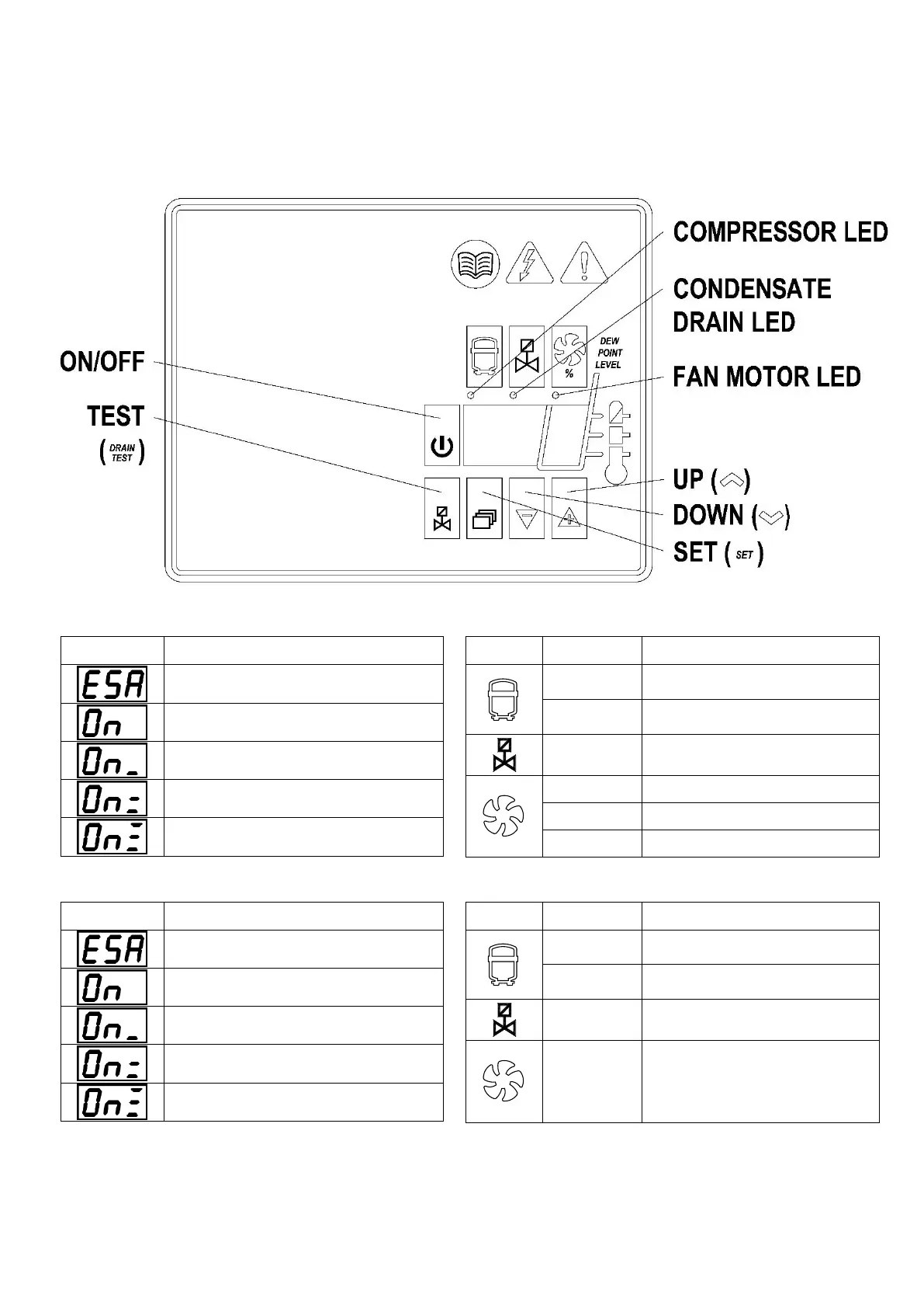 located on the front of the dryer. The control panel is composed of 5 keys (ON/OFF, TEST, SET, DOWN and UP) and a 3 digit display,