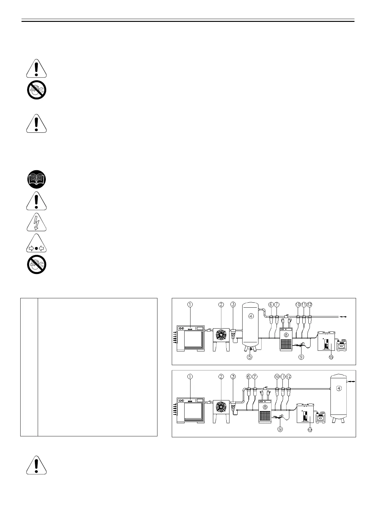 1. Connect the dryer to the compressed air lines indicated in the diagrams below. If not already