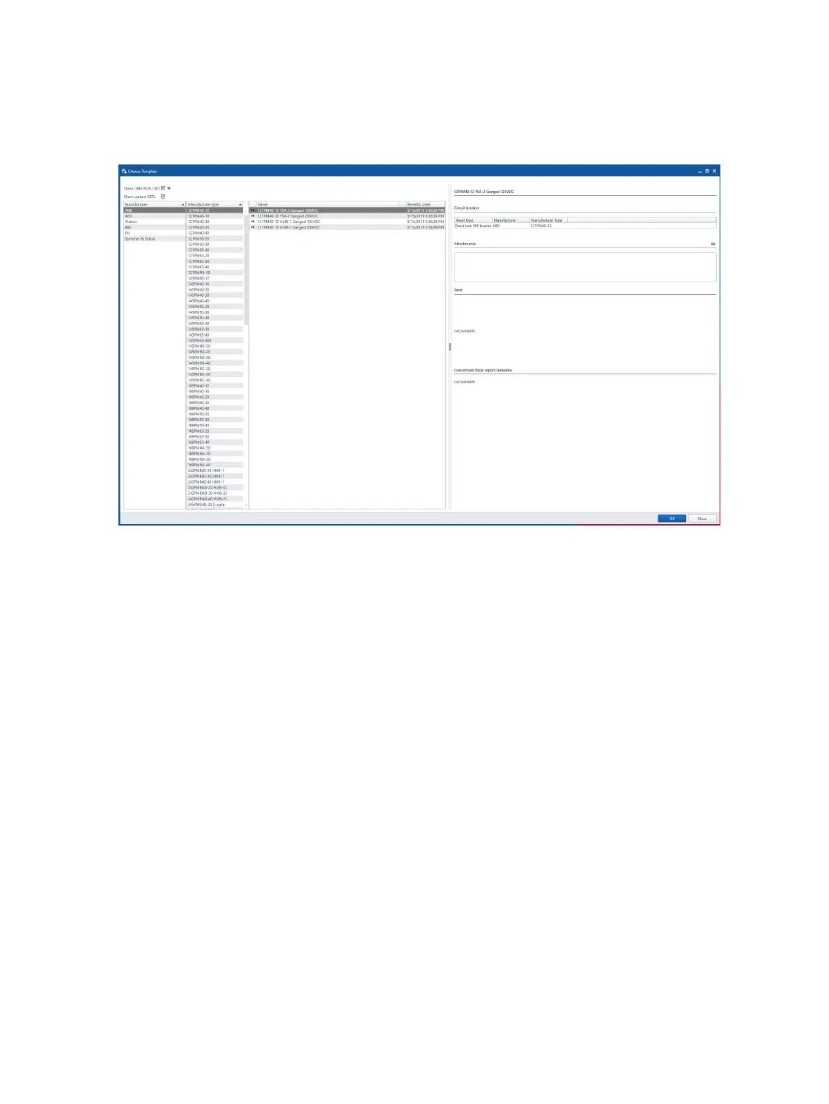 3. In the Choose Template dialog box, select the manufacturer, the manufacturer type and the name